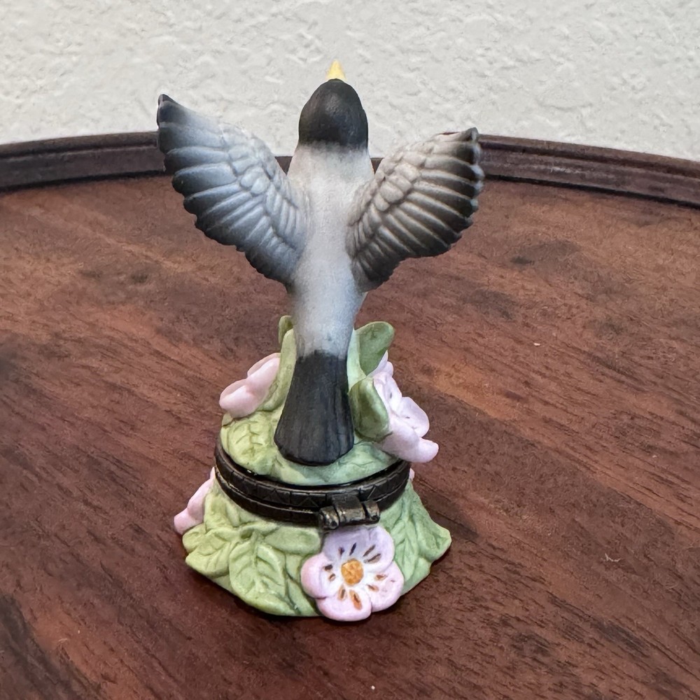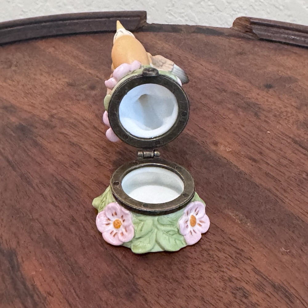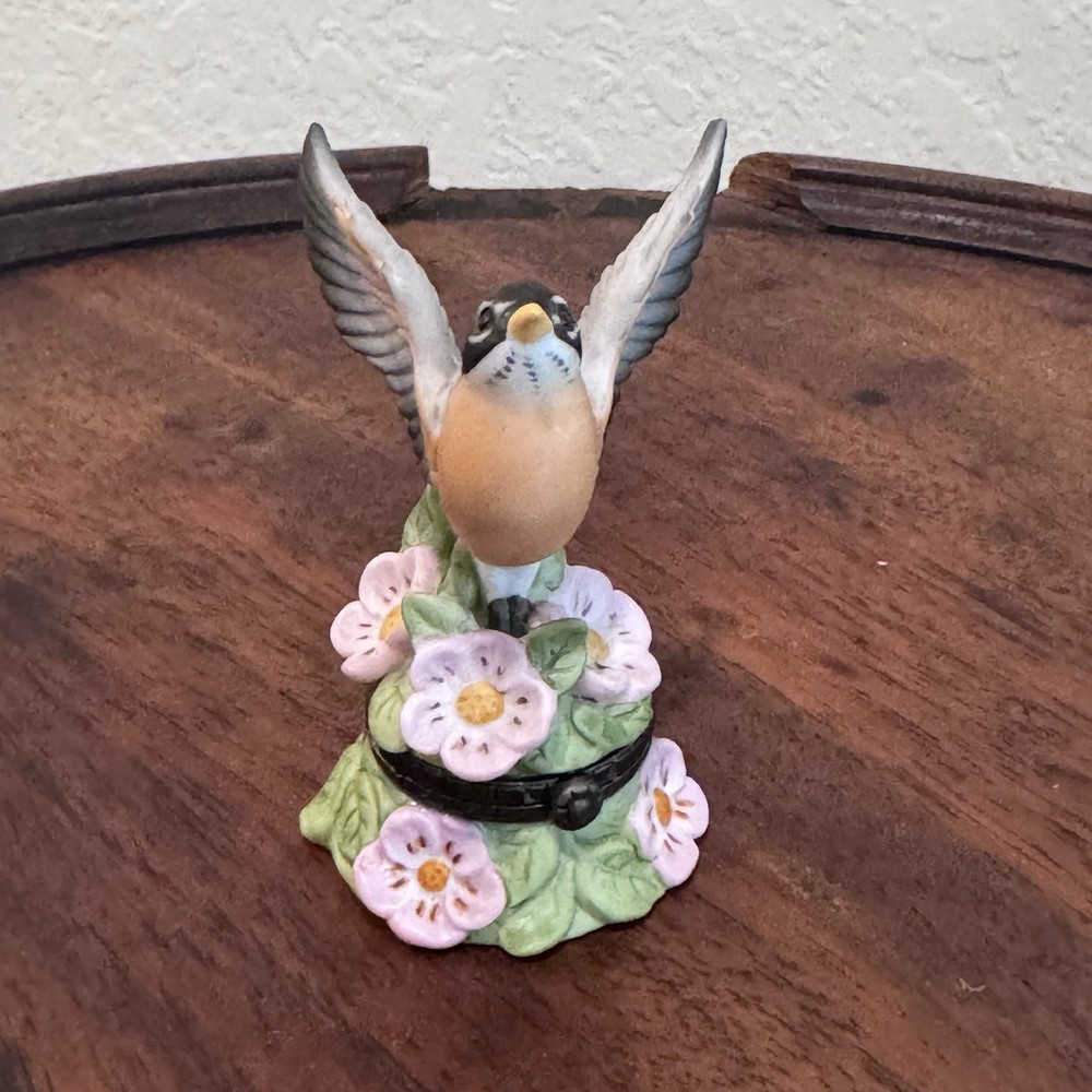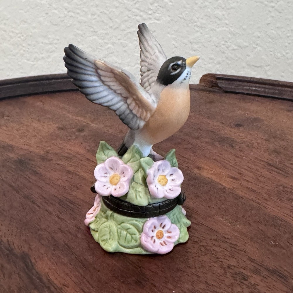 VTG Limited Edition Porcelain American Robin Floral Trinket Box 3 Inch Collectible Figurine