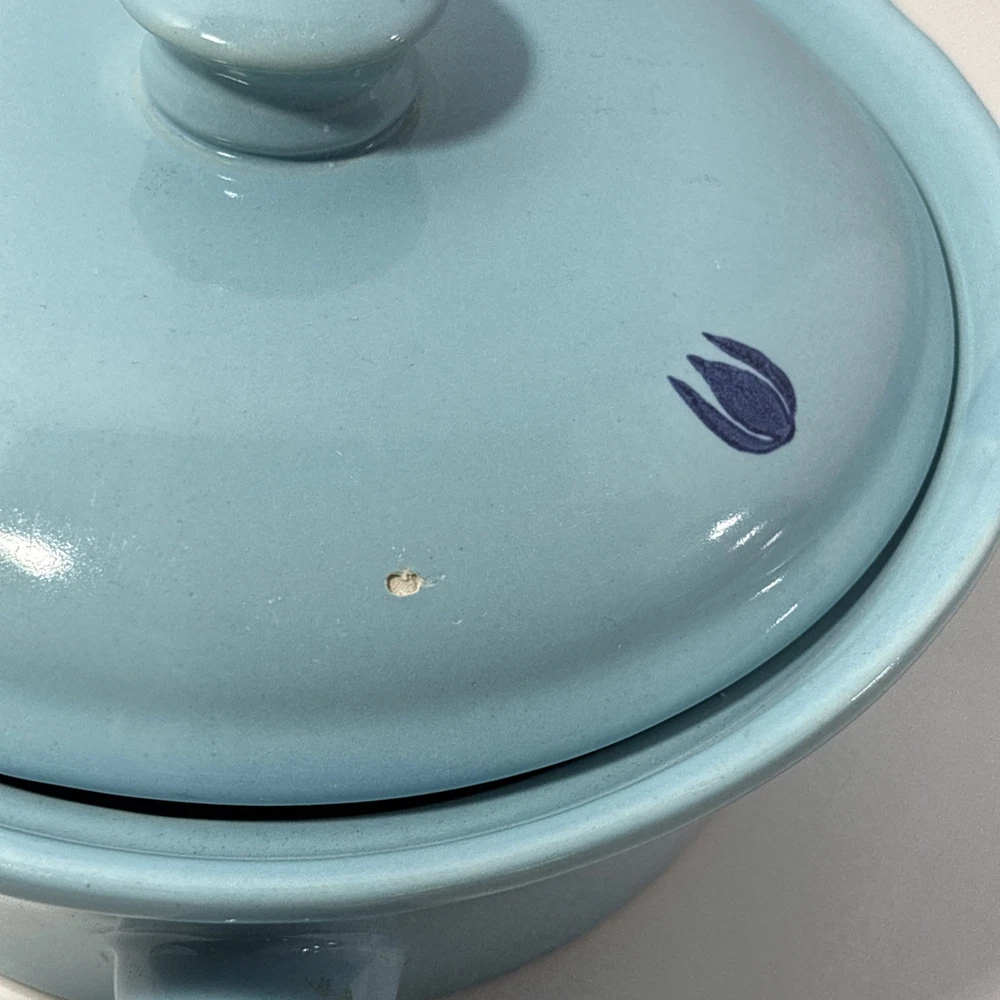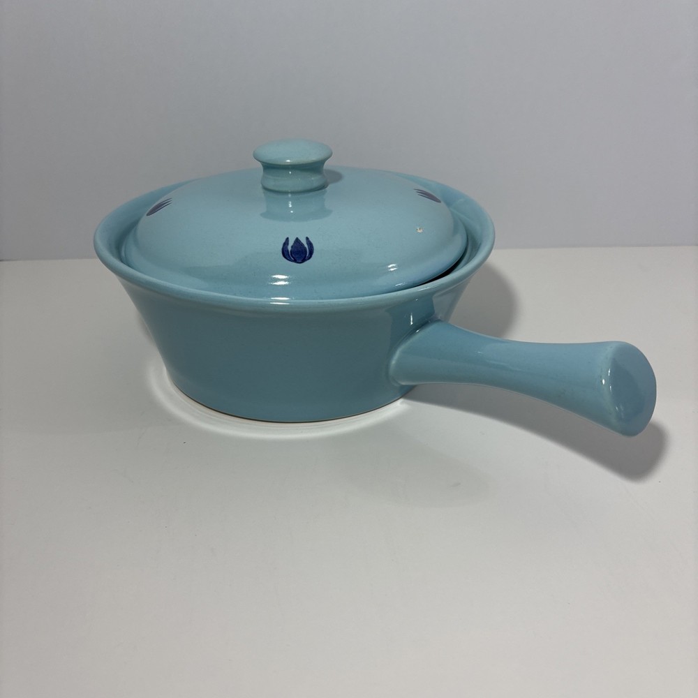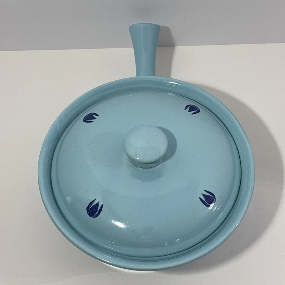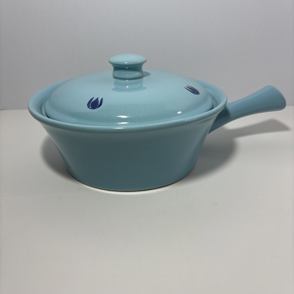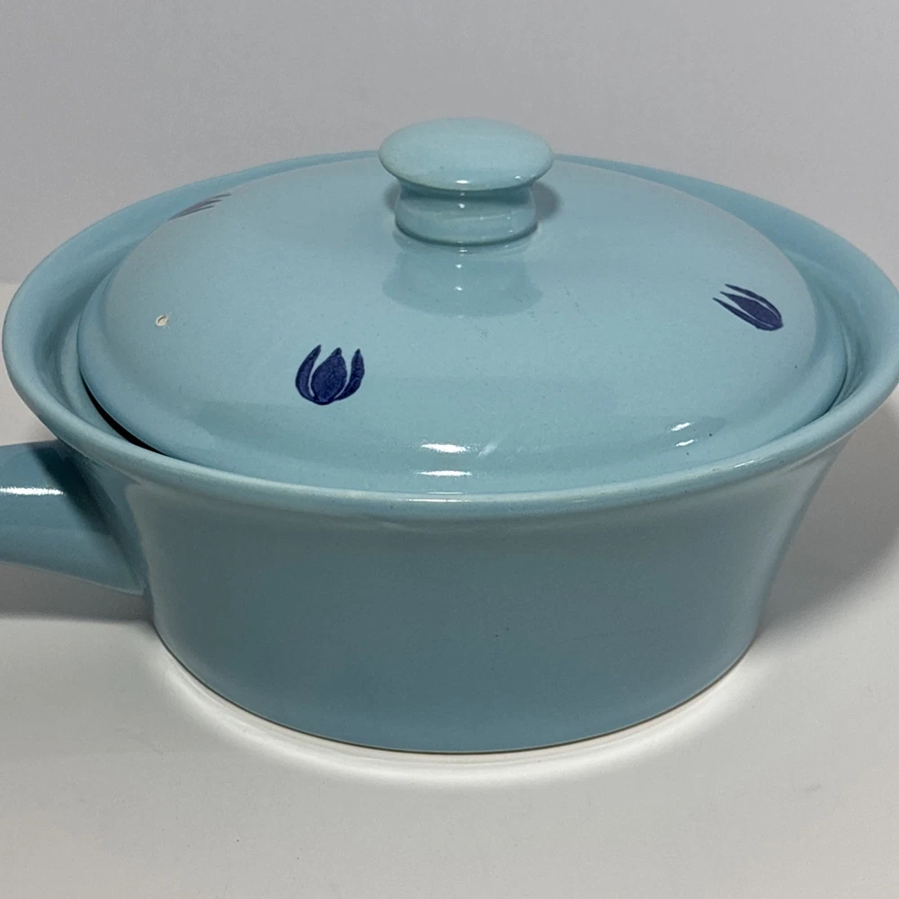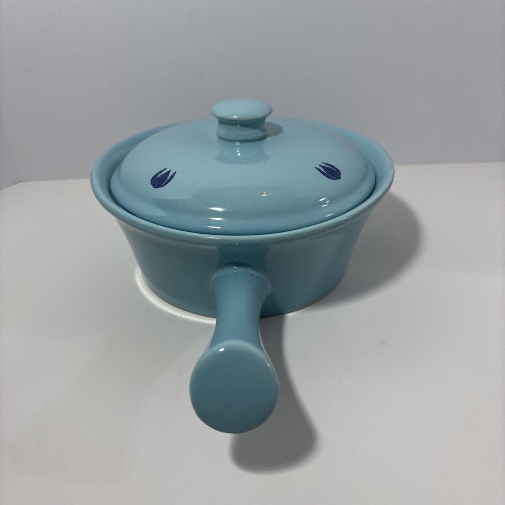 VTG ✅ MCM Pottery Blue W/Tulip Pattern Bean Pot W/handle & Spout Made In USA ✅ Used Condition! *Has a small chip out of the lid on top…clearly seen in photos. ✅ Look at all photos to see the condition of the item. Please feel free to ask any questions you may have. ✅ Ready to ship!