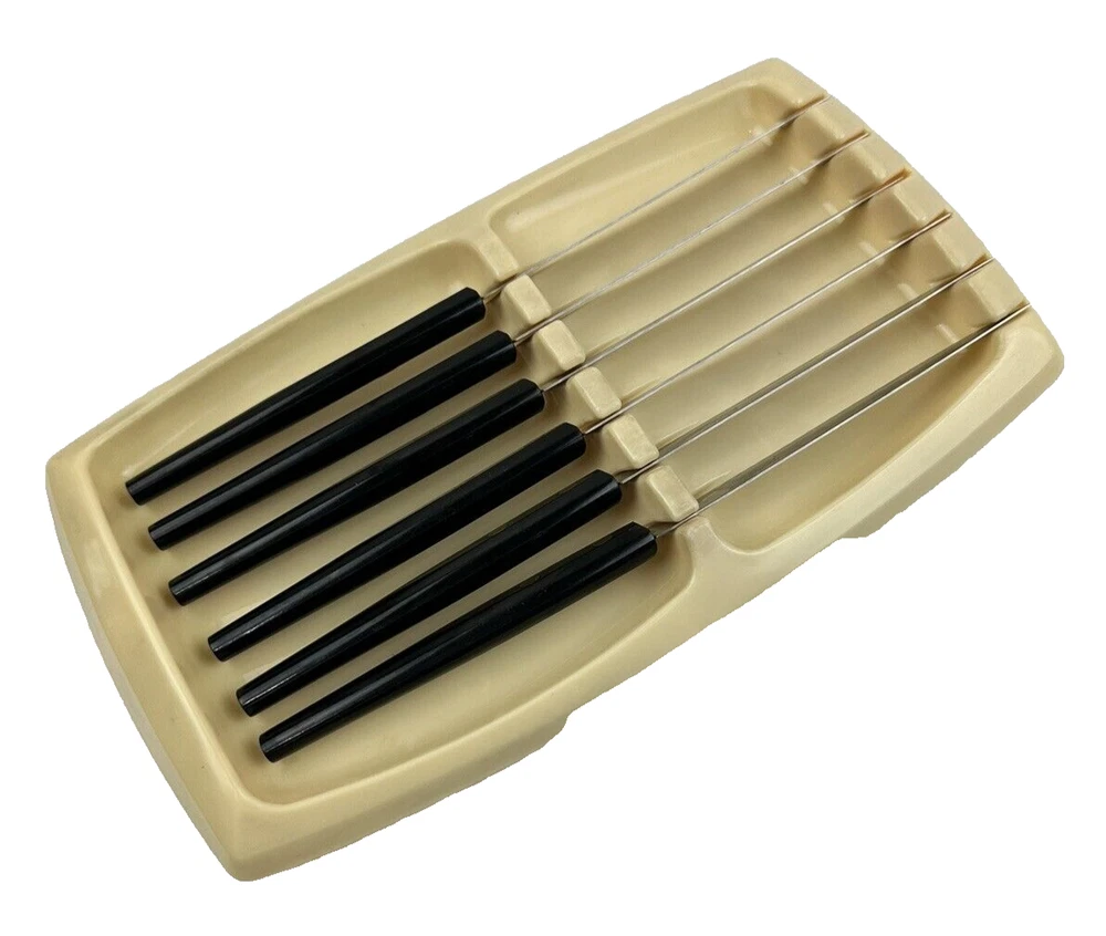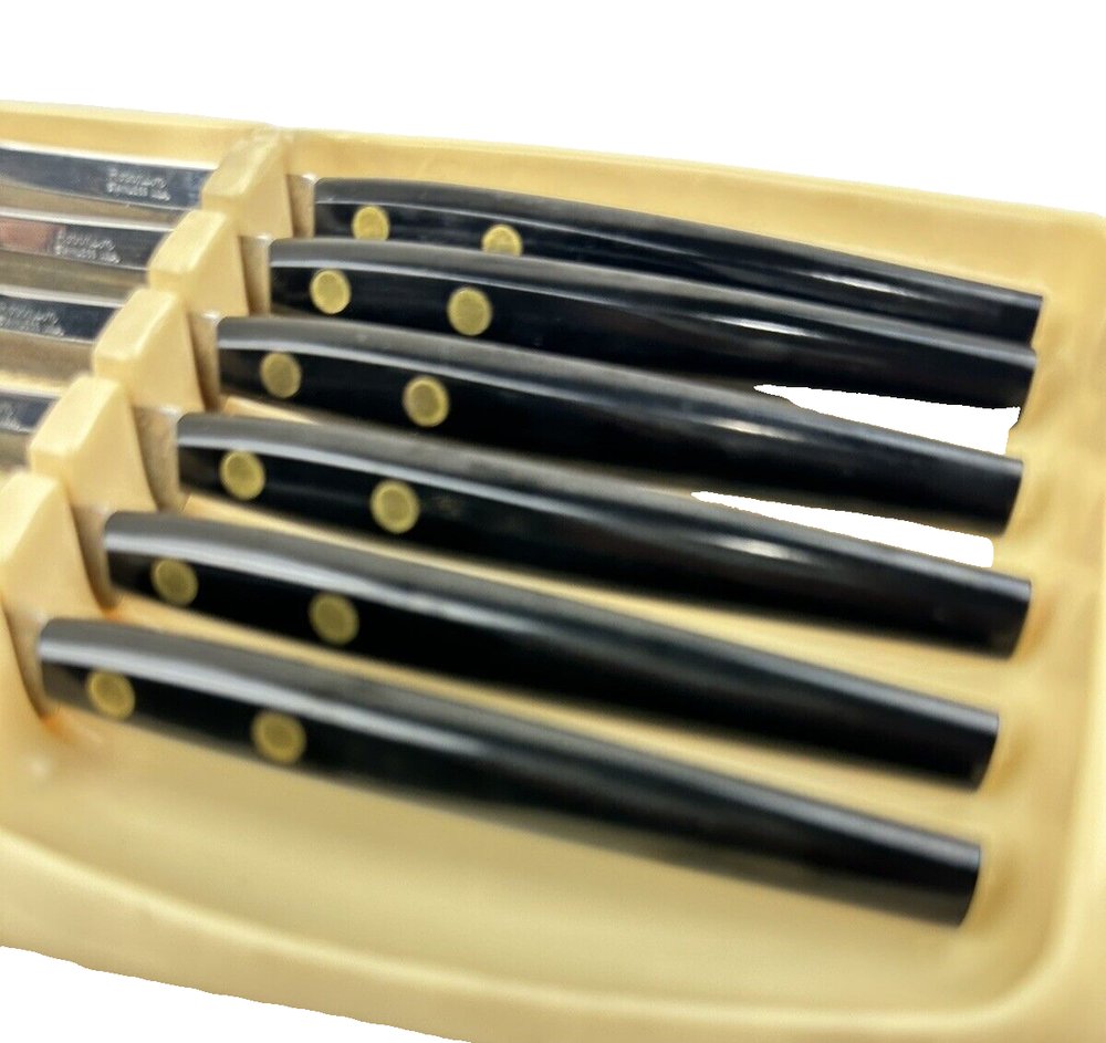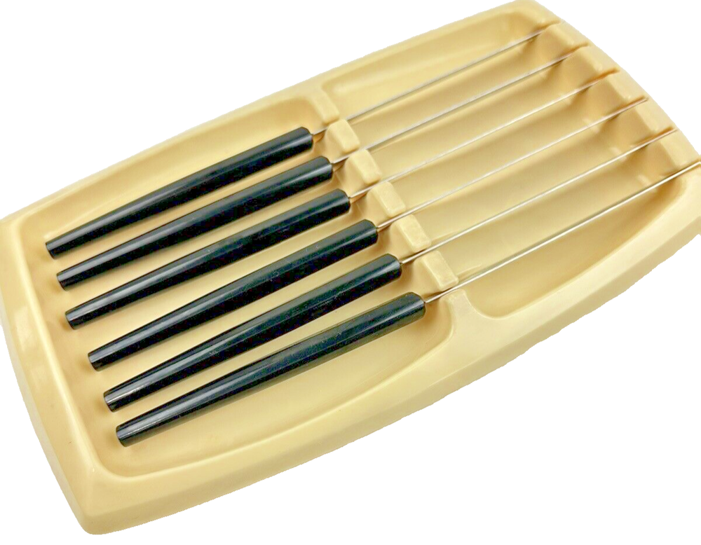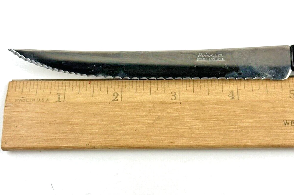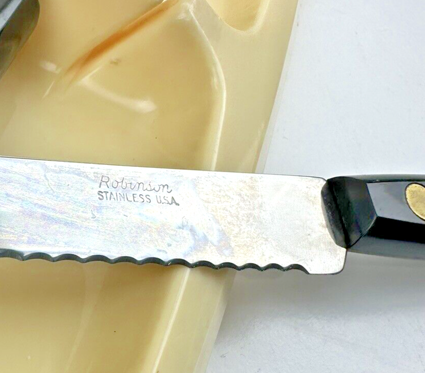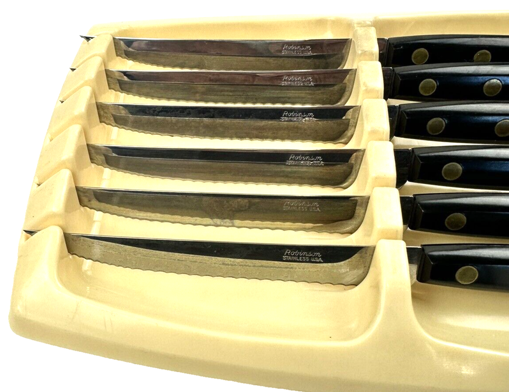 VTG MCM Robinson USA 5" Stainless Steel Steak Knives Black Composite Handle with storage container Thanks for looking… Please review photos closely. Message me for any questions you have.