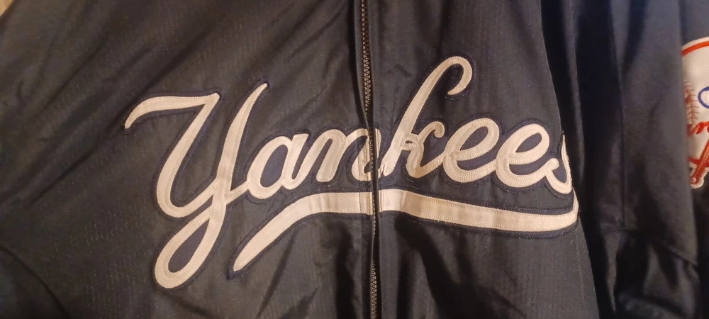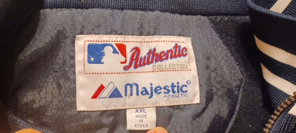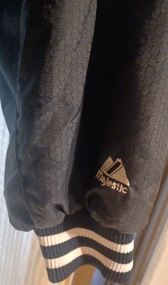 VTG Majestic Authentic Collection NEW YORK YANKEES Bomber Jacket Size XXL Blue no holes, rips, or tears. Experience the classic appeal of the VTG Majestic Authentic Collection NEW YORK YANKEES Bomber Jacket. Tailored for a comfortable fit, this regular size 2XL jacket is a standout piece with its vibrant blue nylon outer shell. Perfect for a range of occasions, from casual outings to travel, it offers versatility and style with its timeless bomber design. The jacket is well-equipped for cooler weather, featuring a cozy nylon lining and polyester insulation to keep you warm during the fall, spring, and winter seasons. Practicality meets sports nostalgia with a solid pattern that embodies the spirit of the New York Yankees. This machine-washable jacket is a practical addition to any wardrobe, combining function with a touch of vintage flair.