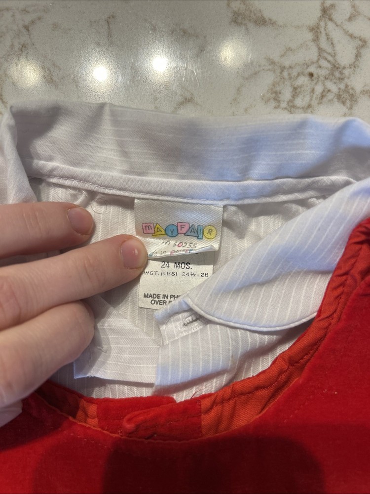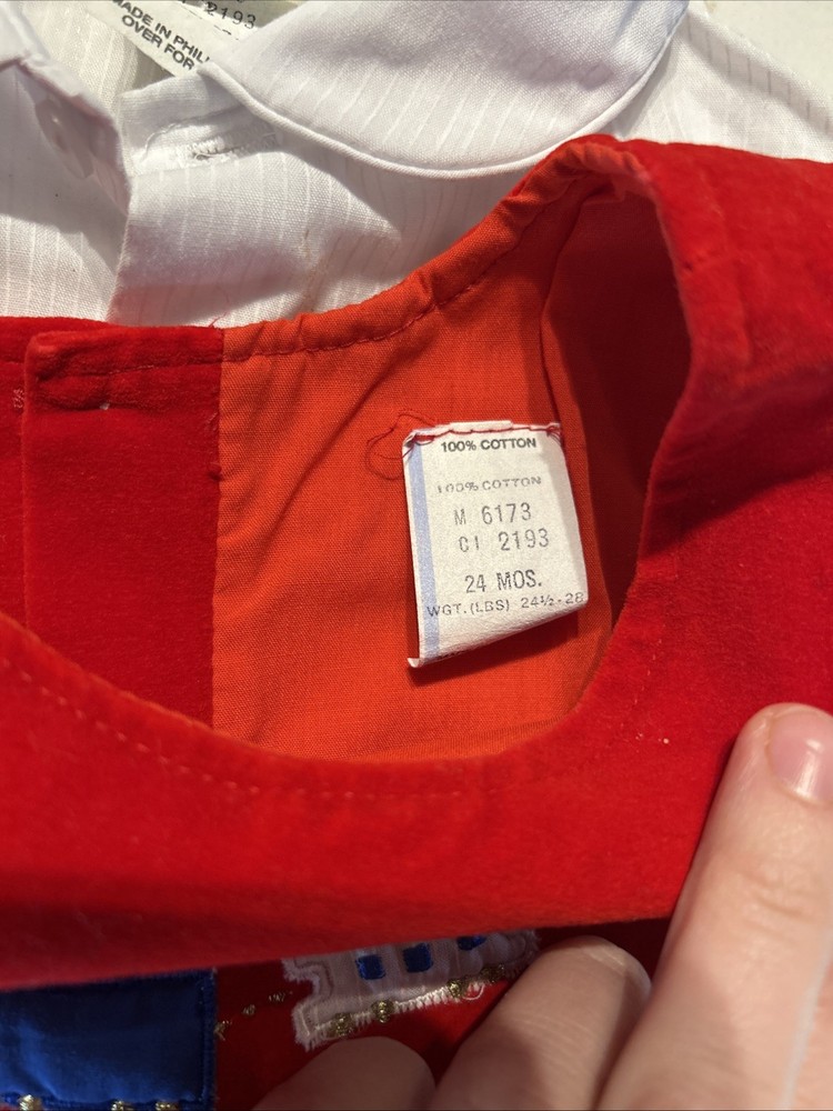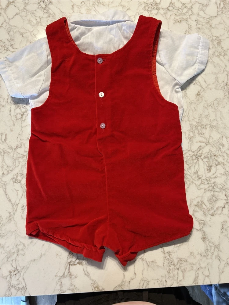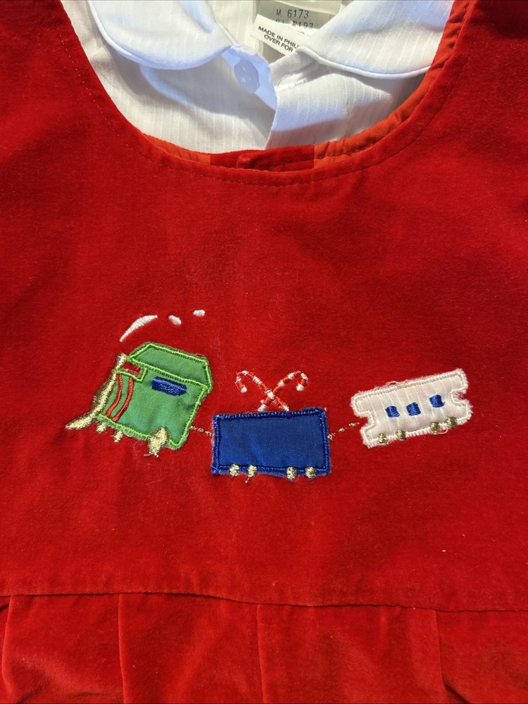 Fabric Type: cotton Handmade: No Pattern: Solid Character: Boy Accents: Embroidered Season: Winter Personalize: No Brand: Mayfair Sleeve Length: Sleeveless Garment Care: Machine Washable Type: One-Piece Set Includes: Dress Shirt Number of Pieces: 2 Piece Theme: Christmas Closure: Snap Vintage: Yes Size: 18-24 Months Material: 100% Cotton Country of Origin: United States Character Family: trains Department: Boys Occasion: Casual, Formal, Party Color: Red Style: Overall Performance/Activity: Walking