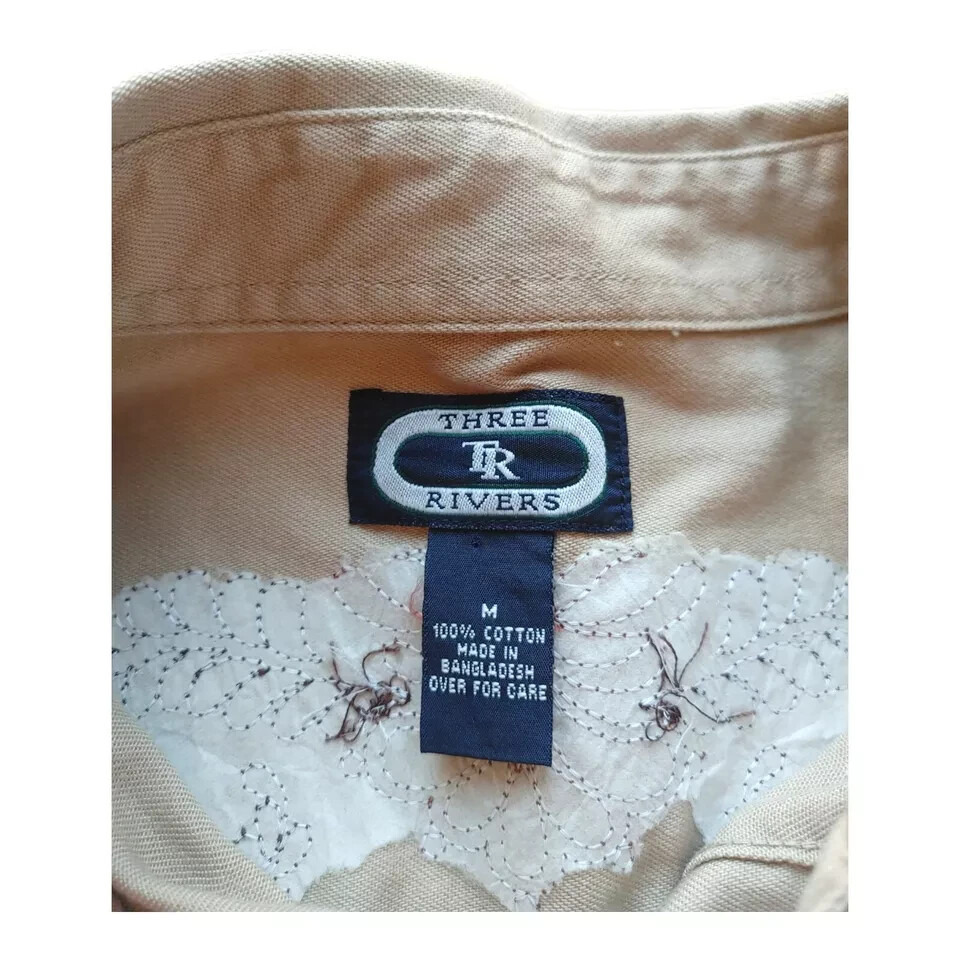 Material: Cotton Neckline: Collared Color: Multicolor Sleeve Length: Long Sleeve Country of Origin: China Size: M Theme: Western Fit: Regular Type: Button-Up Collar Style: Button-Down Brand: Three Rivers Size Type: Regular Department: Men Vintage: Yes