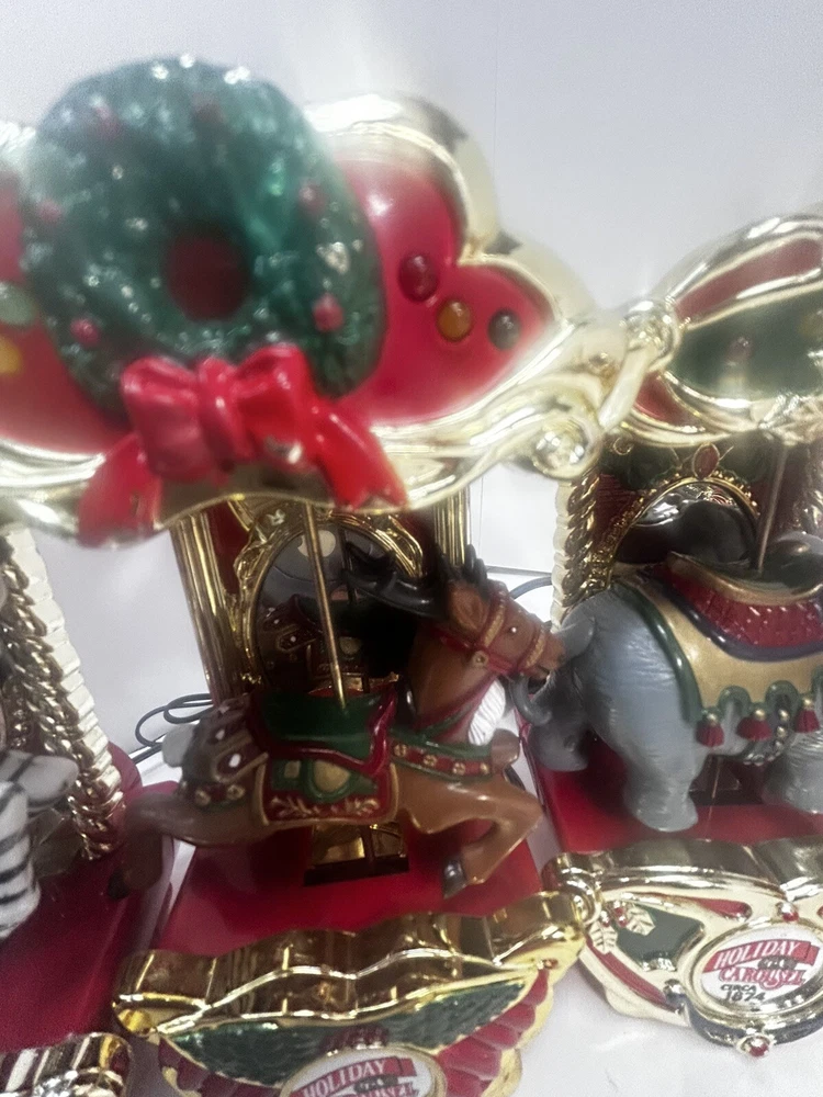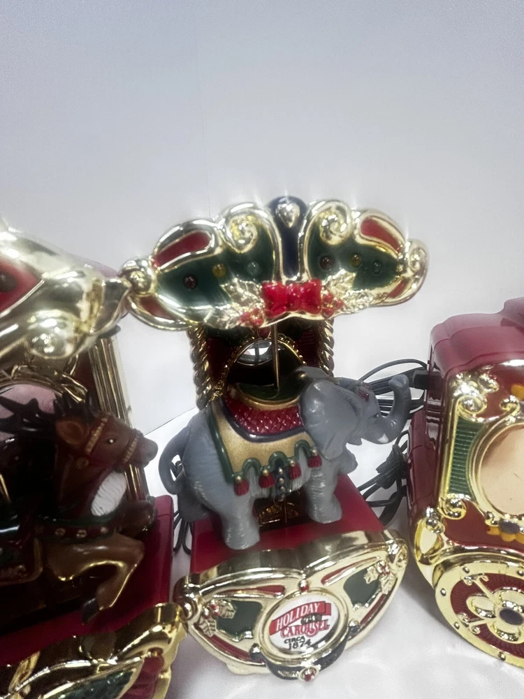 VTG Mr Christmas Holiday Carousel Lighted Musical Animated 6 Circus Animals