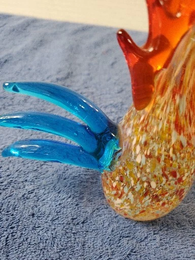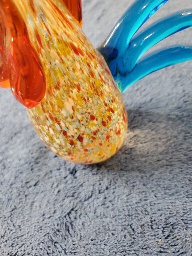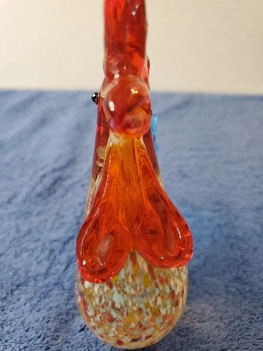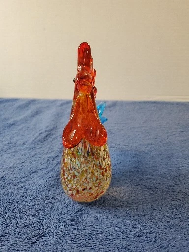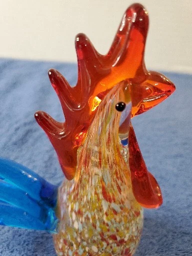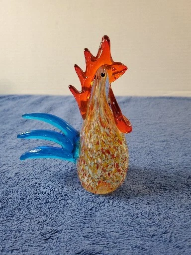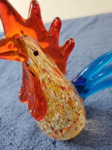 This vintage Murano glass figurine features a colorful rooster with a glossy finish, standing 6 inches tall and 4.5 inches wide. The item is an original, hand-blown piece of art glass with an abstract pattern and an Art Deco style. The figurine is in great shape, perfect for collectors who appreciate Mid 20th Century decorative pottery and glassware. The bird is made of multicolor glass and has a vibrant, eye-catching appearance. It is a unique and handmade piece, suitable for display in any room. The item weighs 1 lb 2 oz and comes unboxed. This original/liscensed reproduction of a rooster is perfect for anyone who wants to add a touch of vintage charm to their home decor. WILL SHIP IN A STURDY BOX. WE WILL COMBINE SHIPPING ON MULTIPLE ITEMS IF POSSIBLE. PLEASE CHECK OUT OUR OTHER ITEMS. THANKS FOR LOOKING.