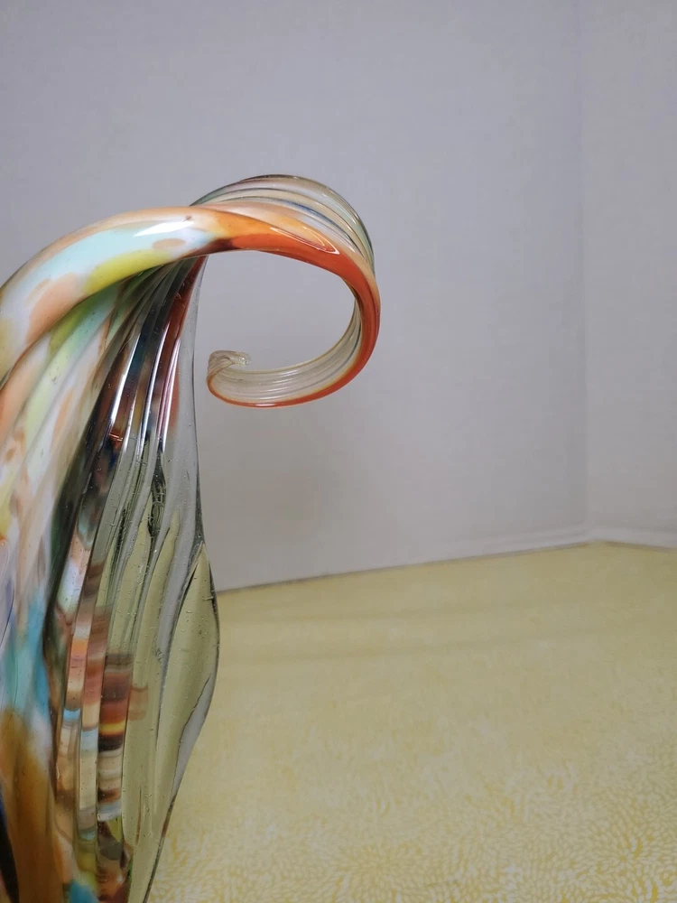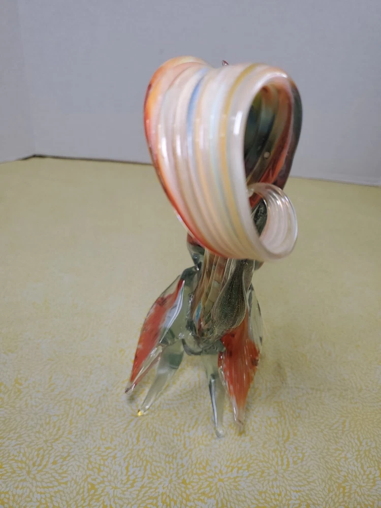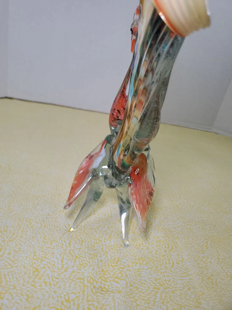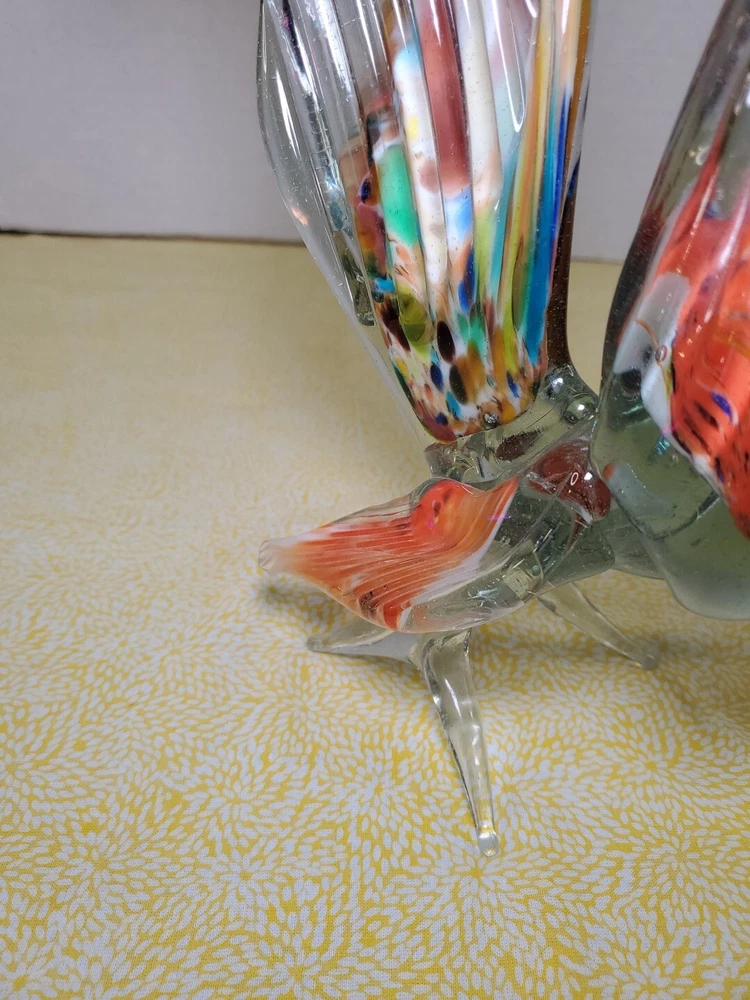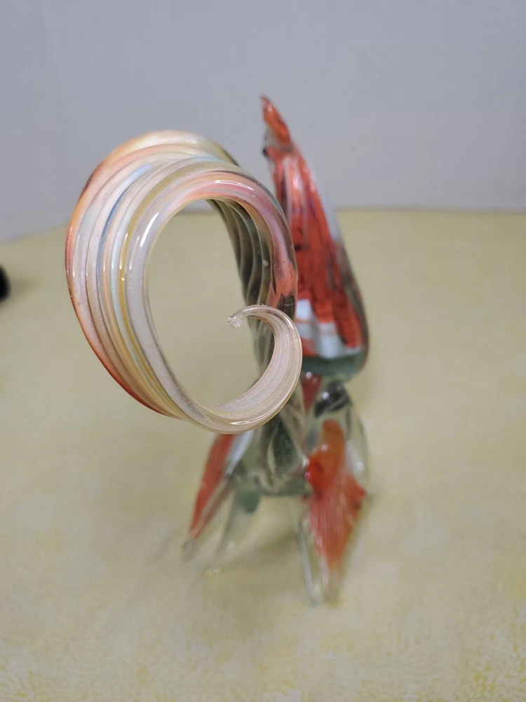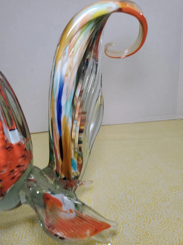 THANK YOU FOR VISITING OUR STORE. WE SHIP 6 DAYS A WEEK (UNLESS THERE IS A FEDERAL HOLIDAY). MOST ITEMS WILL SHIP IN A STURDY BOX AS NEEDED. PLEASE FEEL FREE TO REACH OUT IF YOU HAVE ANY QUESTIONS. WE WILL COMBINE SHIPPING WHEN AVAILABLE. This vintage Murano glass figurine depicts a rooster cockerel in all its glory. Handmade in Italy in the 1960s, this piece is a true work of art. The glass is blown in a swirl pattern, creating a unique and eye-catching design. The figurine is related to the Venetian art glass tradition, with influences from Rococo Baroque and Florentine Murano glass. The piece is perfect for collectors and lovers of vintage art glass. It does not require any additional parts and is ready to display. The colorful abstract design is sure to add a touch of elegance to any room. This Murano glass rooster cockerel figurine is a must-have for anyone who appreciates the beauty and artistry of handmade glass.