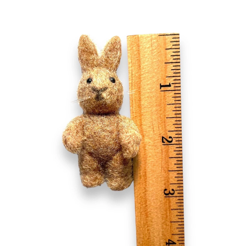 VTG NOS Lot of 11 Flocked Easter Bunny Rabbit Figures Articulated Collectible Add these adorable flocked bunnies to your collection of Easter-themed figurines. These small brown and white rabbits stands at 2.75 inches tall and have movable parts. Please handle with care since they are vintage and fragile with age. The flocked material gives them a cute and soft appearance, making them a perfect addition to any collection of fantasy or wildlife-themed figurines. Or, make them part of your decorative displays or cute Easter gift surprises. These bunny rabbits are collectible and perfect for Easter, art, crafts, fairy tale themed projects, or for wildlife enthusiasts. Its small size makes it easy to display on any shelf or desk. Get your hands on this vintage new old stock lot of 11 articulated bunny figures before they disappear! They come in their original packaging. The one sample shown out of package is one I kept.