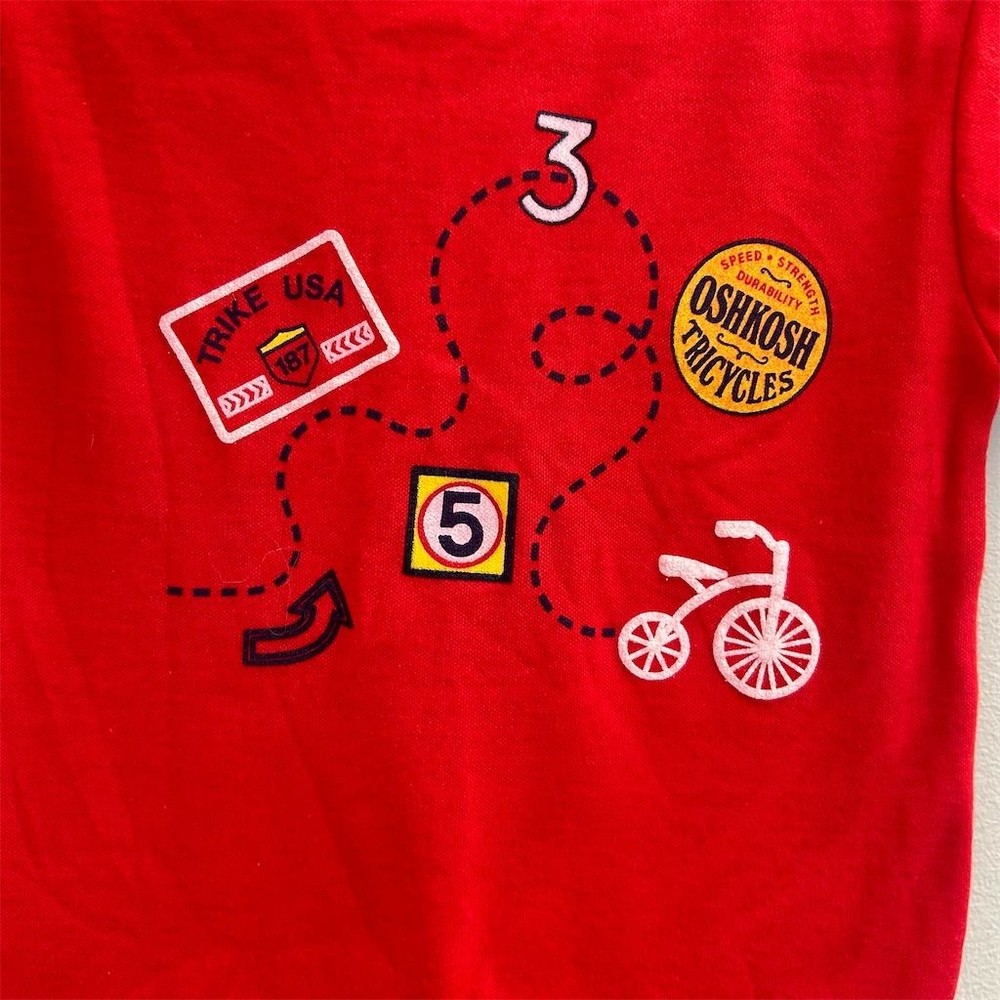 Toddler boys red OshKosh B'gosh graphic t shirt. Features a playful front design with "Trike USA" and "OshKosh Tricycles" emblems, along with dashed lines and numbering suggesting a fun route. Contrasting navy blue trim around the neckline adds a classic touch. Perfect for casual outings, playdates, or outdoor adventures. Department: Boys Type: T-Shirt Sleeve Length: Short Sleeve Theme: Fun Closure: Pullover Performance/Activity: School Pattern: Graphic Print Material: Polyester Blend, Cotton Blend Neckline: Crew Neck Style: Pullover Features: Easy Care Fit: Regular Accents: Logo, Embroidered Season: Spring, Summer Keywords: OshKosh, toddler, graphic tee, tricycle, playful, casual, outdoor, playdate, short sleeve, cotton blend, bright red, boy's fashion, apparel All items come from a smoke free, pet friendly home. All of items unless NWT or Dry Clean Only are washed with Tide. We try our best to disclose any flaws with items, if we miss something please reach out and let us know. We offer combined shipping on all our items. We do take measurements of our clothing listed for sale. Please compare the measurements to something you already own.