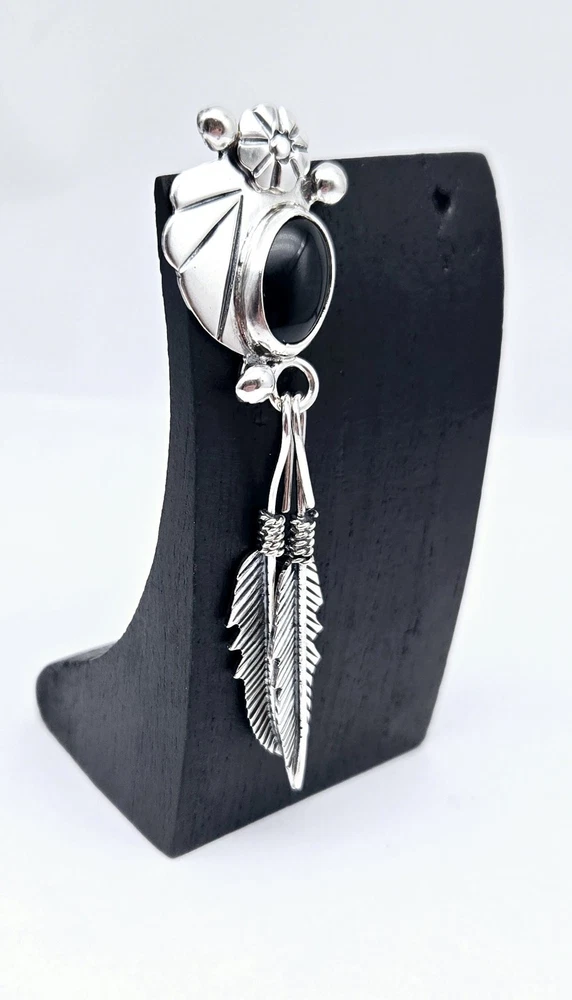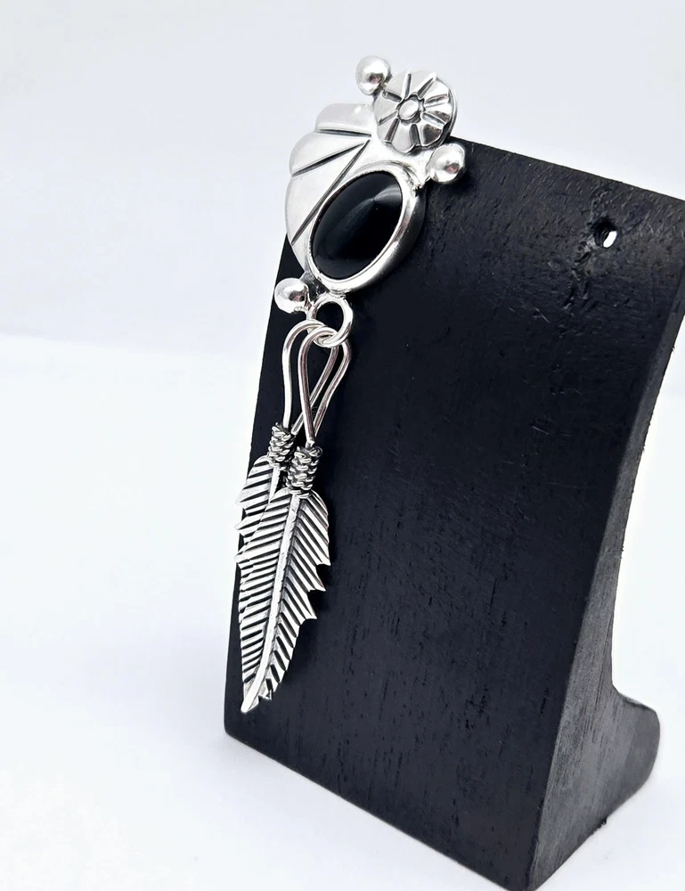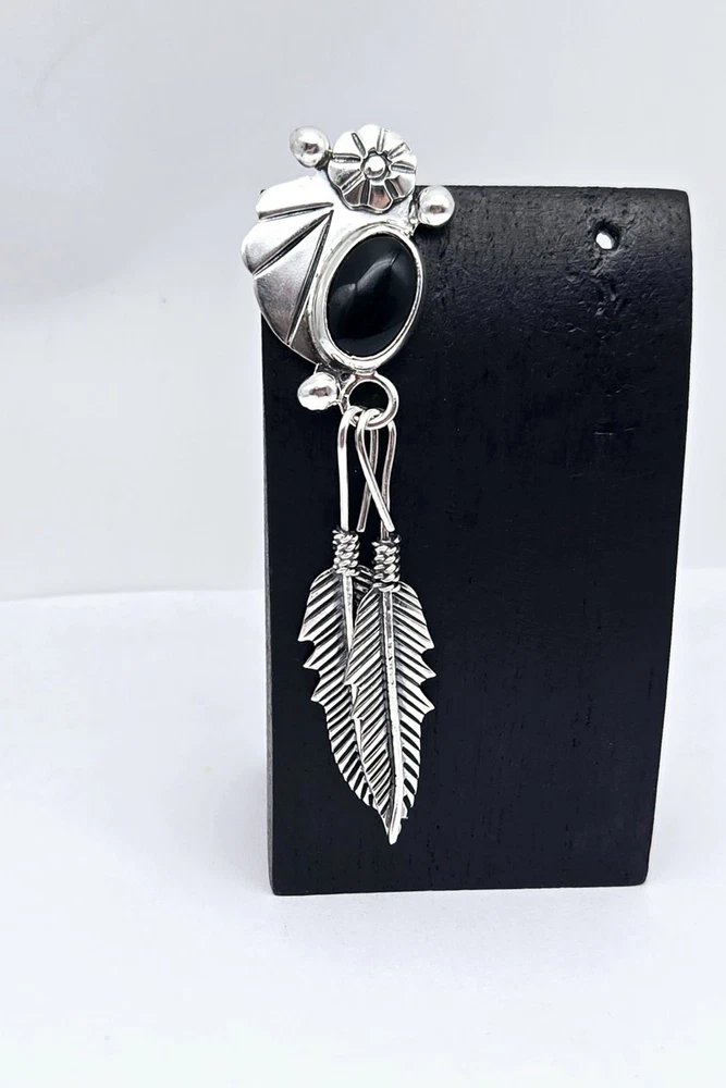 HomeVTG Native Taxco Sterling Silver Onyx Inlay Single Post Feather Earring - 12.0g