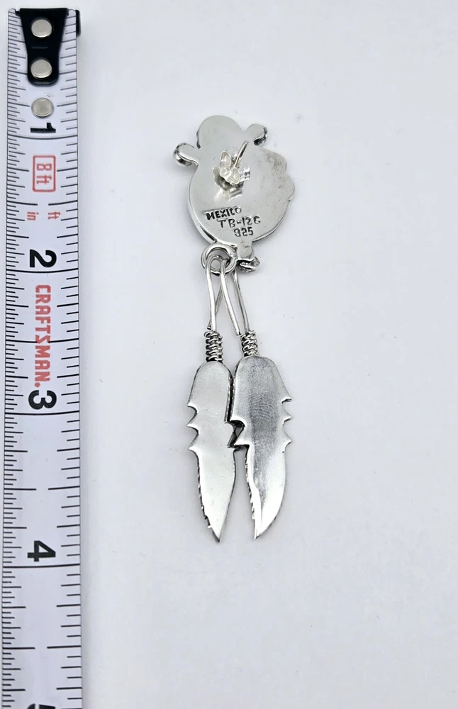 Theme:Ethnic, WesternMetal:Sterling SilverCountry of Origin:United StatesTribal Affiliation:NavajoNumber of Gemstones:1Brand:TaxcoMetal Purity:925Vintage:YesStyle:EarringsCountry/Region of Manufacture:MexicoMain Stone:TurquoiseColor:SilverMain Stone Color:BlackMaterial:FeatherEthnic & Regional Style:TaxcoHandmade:YesType:EarringsSigned:YesAntique:Yes