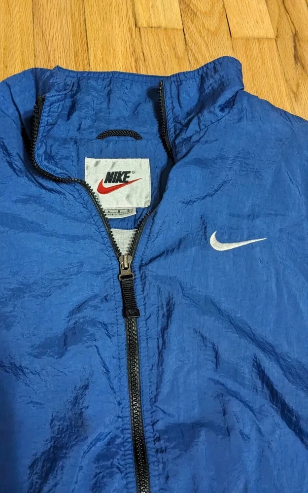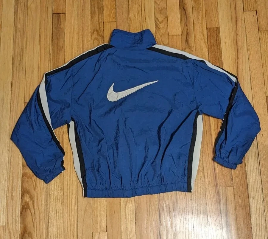 VTG Nike Big Swoosh Full Zip Up Windbreaker Jacket Size Large 90s Blue