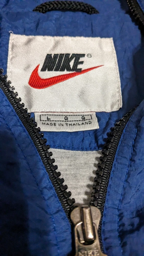 Vintage Nike Windbreaker Blue Black Embroidered Logo Men's Size L Full Zip