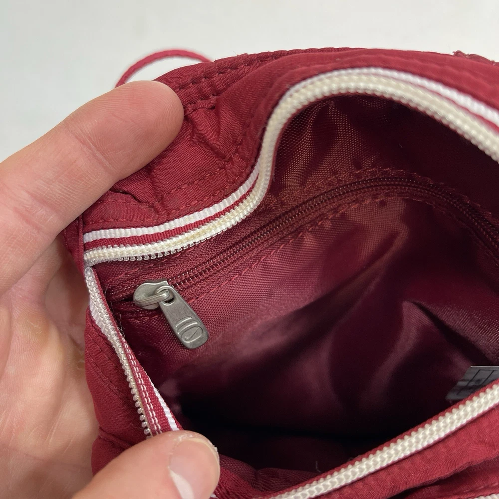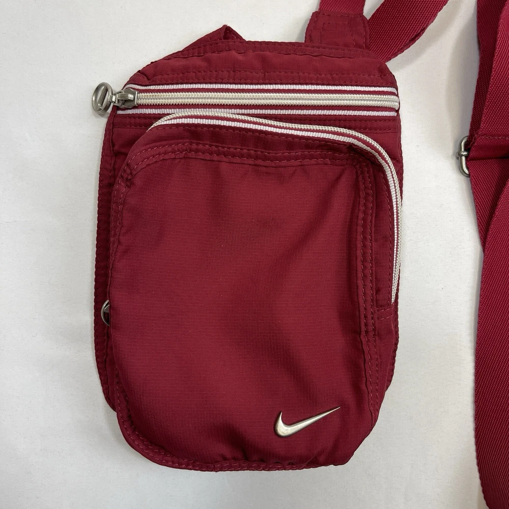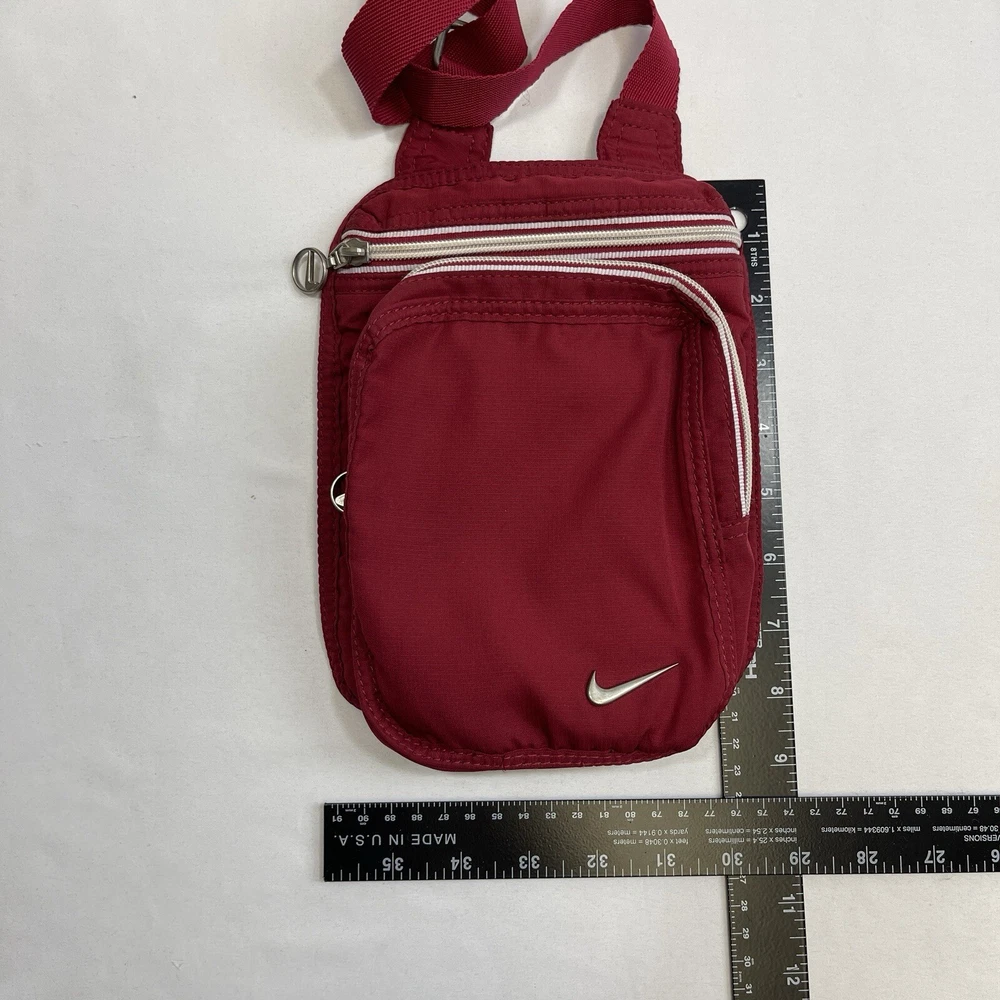 VTG Nike Crossbody Sling Bag Red Metal Accents Y2K Streetwear Sport Swoosh 2000s This item is in pre-owned condition and therefore may show signs of previous use, such as small stains, holes, or other wear. Please view all of the items photos as any defects will be documented there. Measurements can be seen in the photos.