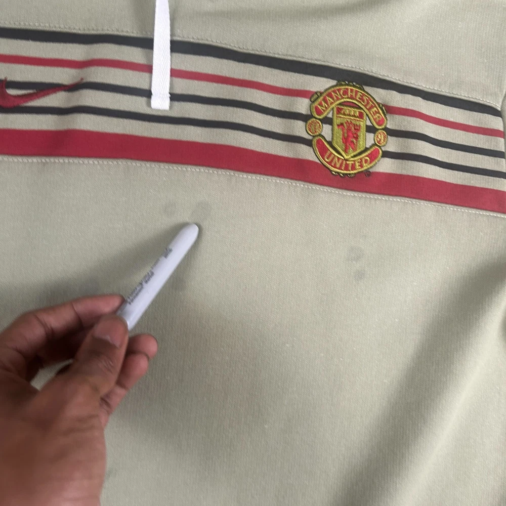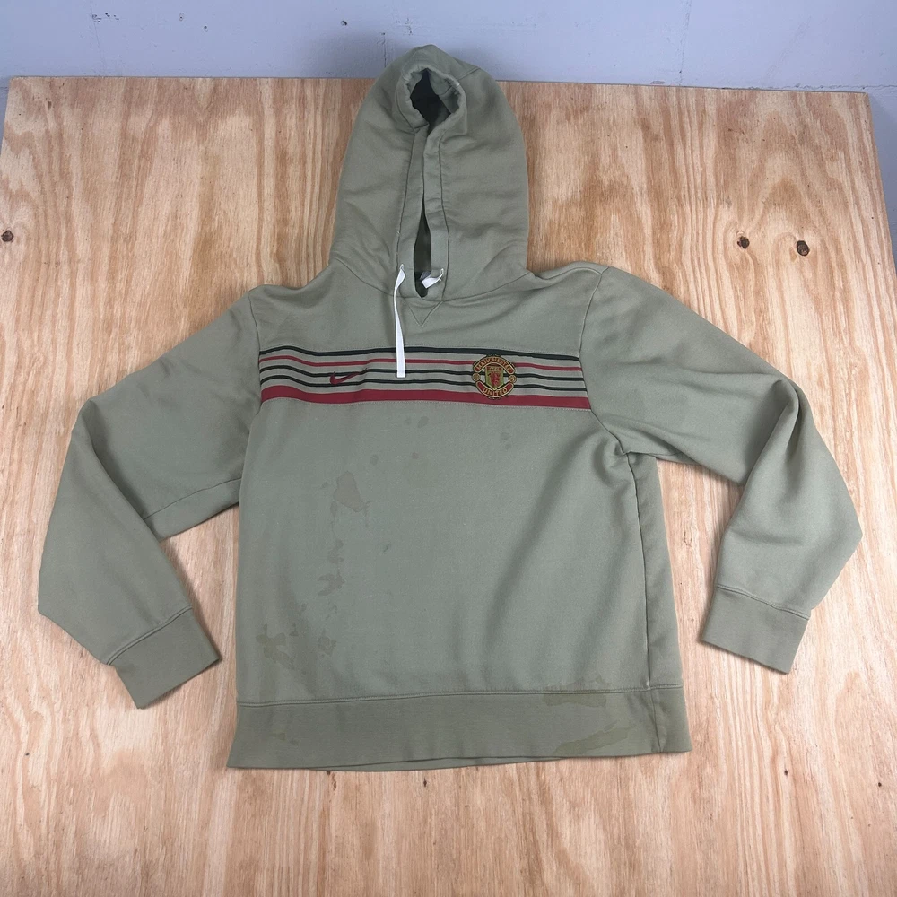 Elevate your casual style with this vintage Nike Silver Tag Manchester United Hoodie Sweatshirt. Made of cotton fleece fabric, it features a round neck, drawstring closure, and long sleeves. The hoodie is accented with an embroidered logo and a graphic print pattern, making it perfect for fans of the soccer team. This pullover hoodie is hooded and machine washable, making it a practical choice for everyday wear. It is available in size 2XL and fits regular. The hoodie is perfect for walking, soccer, and other sports activities. It is a must-have for any Nike Sportswear collector. SKU: AK-39-26