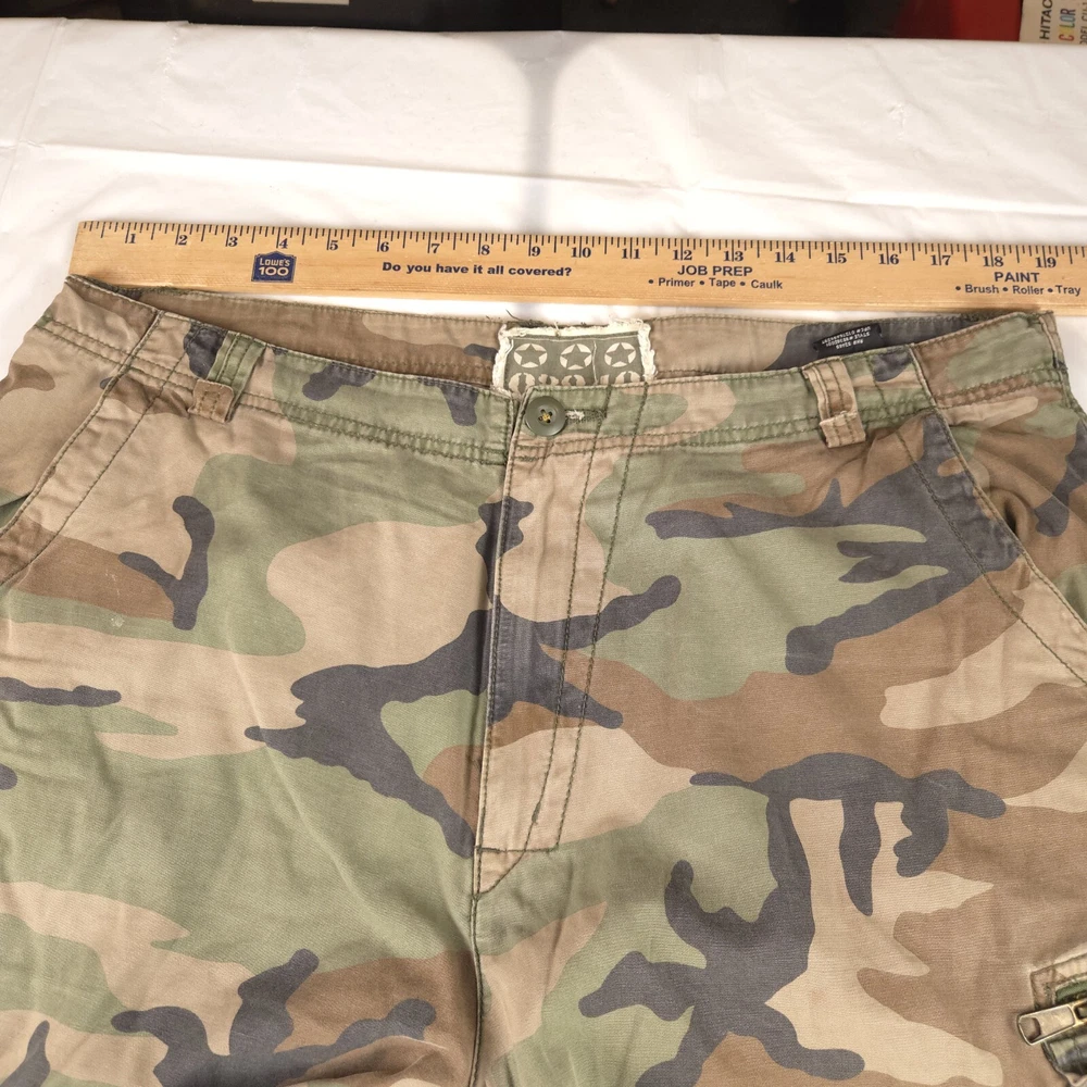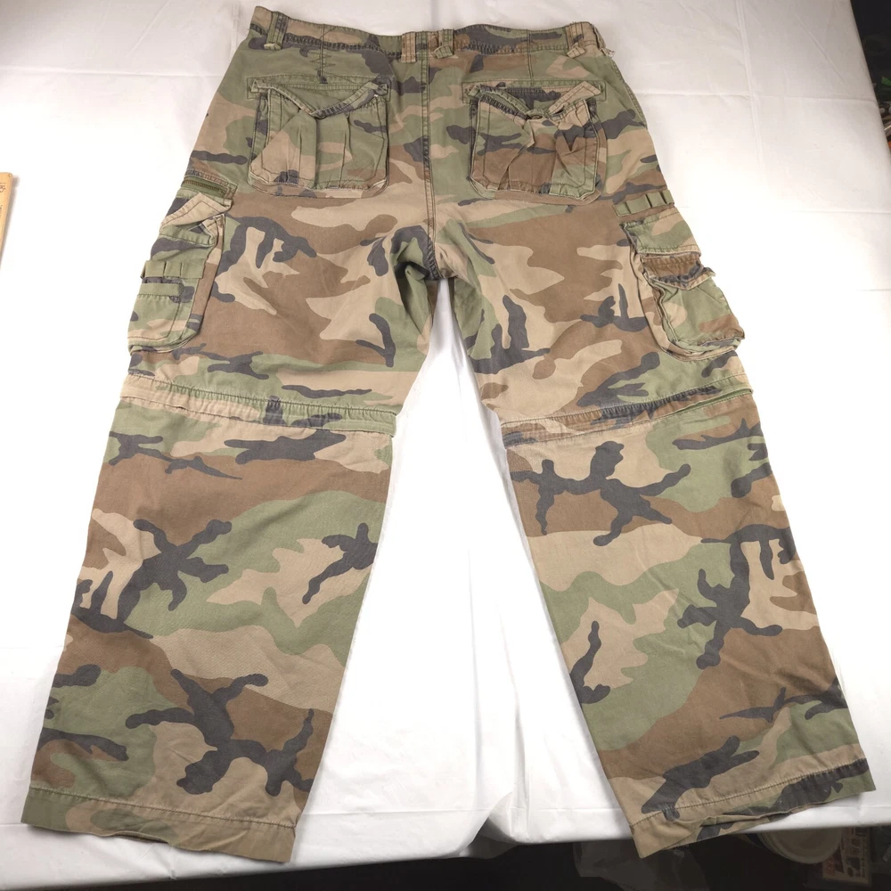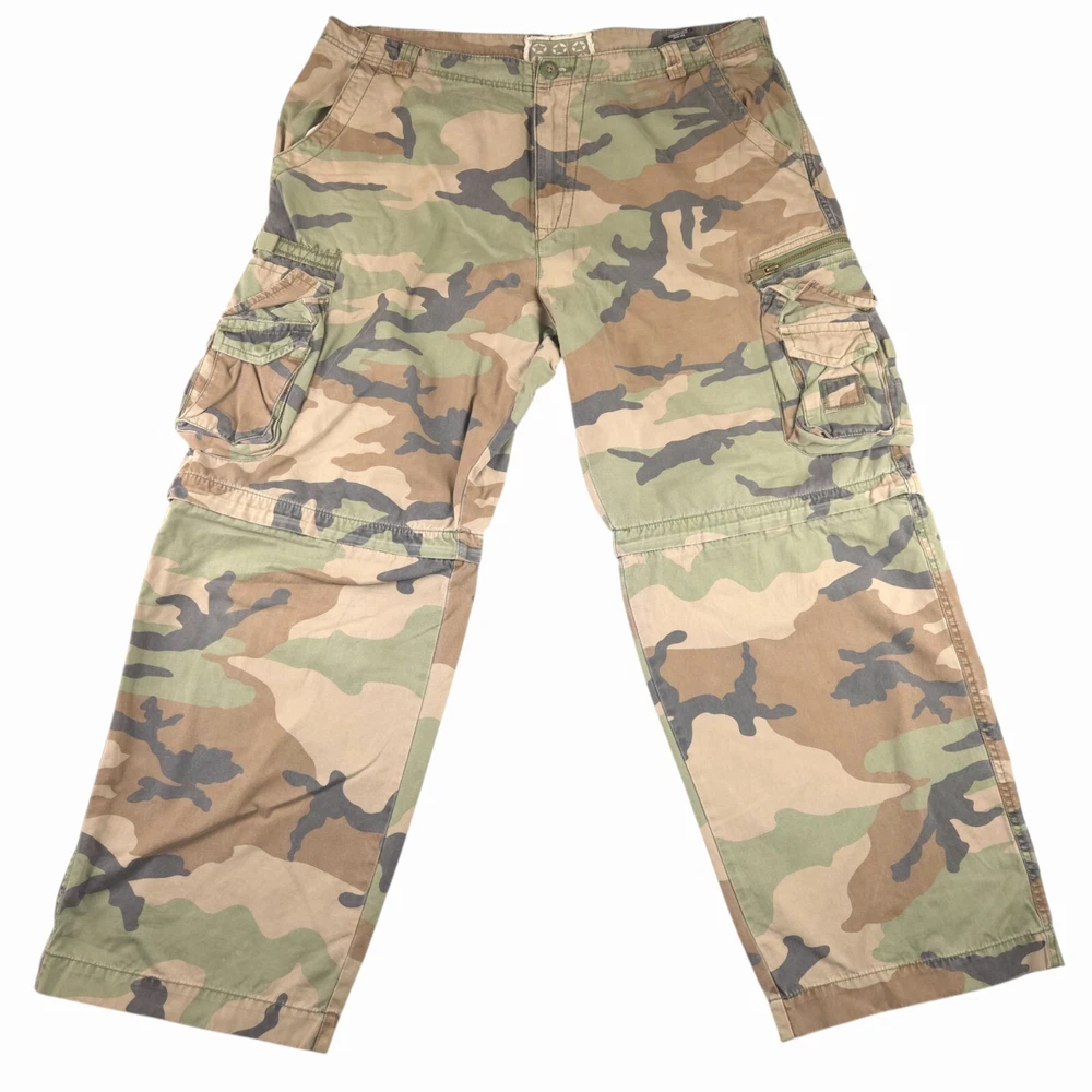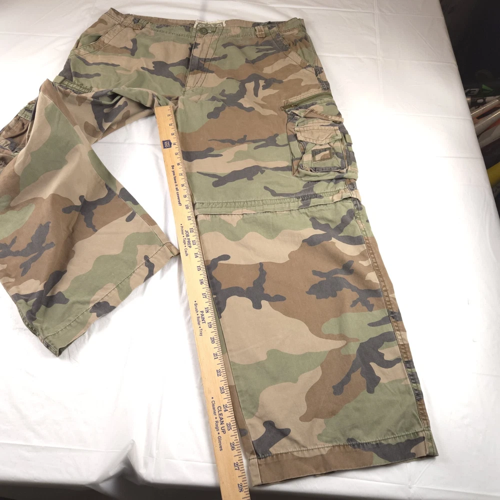Has stain shown in pic 3. Convertible can be zipped off into shorts. Baggy Fit similar to jnco see photos for measurements to determine proper fit before buying. Thanks.