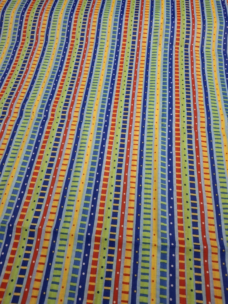 Most all of the fabric I am selling is Vintage and OOP that I bought years ago when I first started sewing and had plans...that life magically interrupted lol. ππ However, they are NEW, and are either on the bolt, or stored appropriately out of light and in totes, drawers or shelved and covered. Smoke free/pet free. This Listing is for Colorful Striped w/dots Fabric, BTY ~cotton ~LIGHTWEIGHT ~Norm Lambert for General Fabrics A fun and colorful novelty fabric. It is LIGHTWEIGHT and would be great for costumes, doll clothes and craft projects. Questions?....please don't hesitate to ask :) Thanks for looking! **I do try and check back once you receive your order, but life does get chaotic sometimes lol, so should there be any questions or concerns, please let me know and I will find a solution. :) SHIP TIME: Orders will ship within 24 hours of payment received unless it's a holiday or a weekend. Orders ship out USPS Ground Advantage--generally takes 3-5 days depending on where you live. I will combine shipping when it exceeds my cost to ship multiple orders. Please use "request total" button before paying so shipping can be adjusted if possible. Or, just pay and let me know, I will refund you on excess shipping. I am not making money on shipping lol, the shipping is very close to, if not under what it costs me to ship.