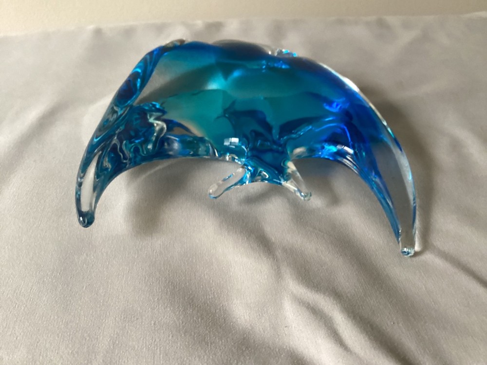 VTG. Oggetti Murano Art glass angelfish sculpture crafted n Murano, Italy. Mid century 1950s. Shimmering blue glass. Excellent condition.