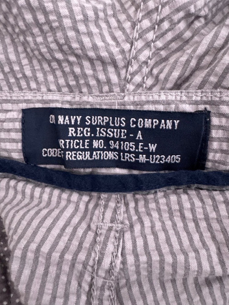 Good preowned condition VTG Old Navy Surplus Co. Reg Issue A Cargo Pants Style: Cargo Pants Material: Grey Seersucker Fabric Fit: Relaxed Details: Multiple Utility Pockets, Classic Vintage Look Brand: Old Navy Surplus Co. Flat lay: waist 21" Rise 13" Inseam 31" Leg Opening 10.5" Material: 100% cotton vintage, relaxed, cargo, 90s, coastal, preppy, striped, baggy, utility, light weight, comfy, vacation, casual, relaxed, PLEASE check all flat lay measurements and listings carefully BEFORE PURCHASE!I put in a lot of work into hand measuring and researching each items as best as I can! Thank you so much for your consideration! Please note that: RETURN SHIP FEE IS PAID BY THE BUYER! If you are not too familiar with flat lay measurements, I recommend taking a measurement of your own clothes that you feel comfortable and compare with the measurement I provide. For returns: The items MUST BE IN SAME CONDITION AS SOLD for full refund! We all don't like returns and let's work together to minimize! Please note that RETURNS ARE NOT ACCEPTED FOR NEW WITH TAG OR NEW WITHOUT TAG ITEMS!
