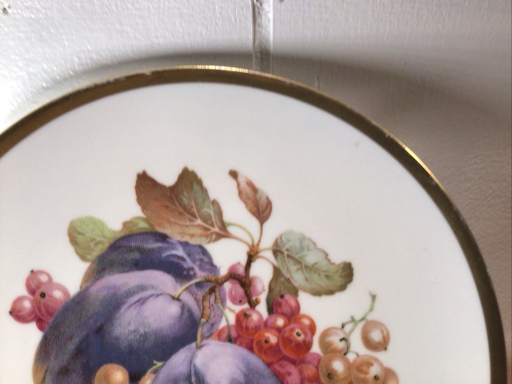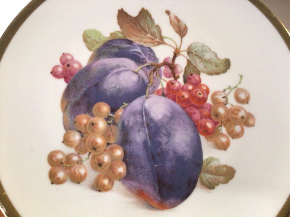 This vintage salad/lunch plate from Crown Bavaria is a beautiful addition to any collection. The round plate features a glossy finish and is made of porcelain with a Berries pattern in white. The plate was manufactured in Germany in 1886 and is an original piece from the American Empire style. The plate is suitable for all occasions and is perfect for serving salad or lunch. It is recommended to hand wash only for care instructions. The set includes one salad plate and one regular plate. The backstamp is printed and the production technique is pottery. This plate is a great representation of the mid-20th century (1941-1969) era and is sure to impress any collector.