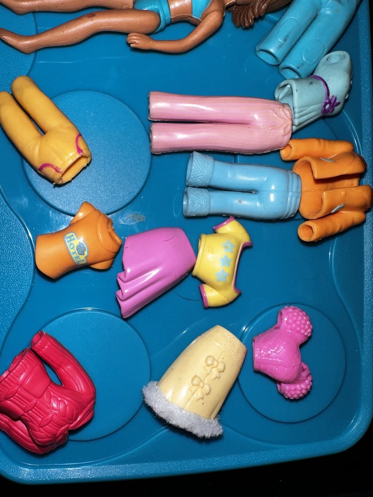 This is a lot of vintage Polly Pocket and Friends dolls, including one doll and stretch rubber clothes. The dolls are made by Mattel and are 3.5 inches in size. The set includes 4 dolls , outfits. The franchise is Polly Pocket. 24-0420