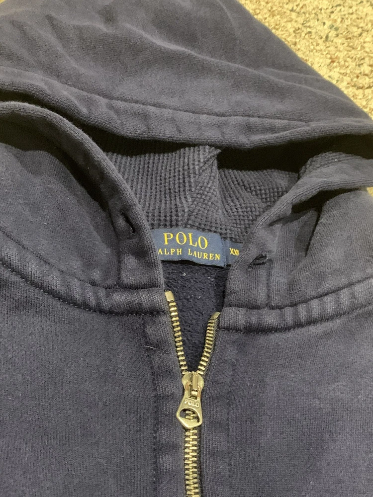 Size Type: Regular Size: 2XL Style: Full Zip Vintage: Yes Closure: Zip Department: Men Neckline: Crew Neck Fabric Type: Knit Pattern: Solid Theme: Preppy Sleeve Length: Long Sleeve Material: Cotton, Polyester Type: Hoodie Color: Blue Fit: Regular Brand: Polo Ralph Lauren