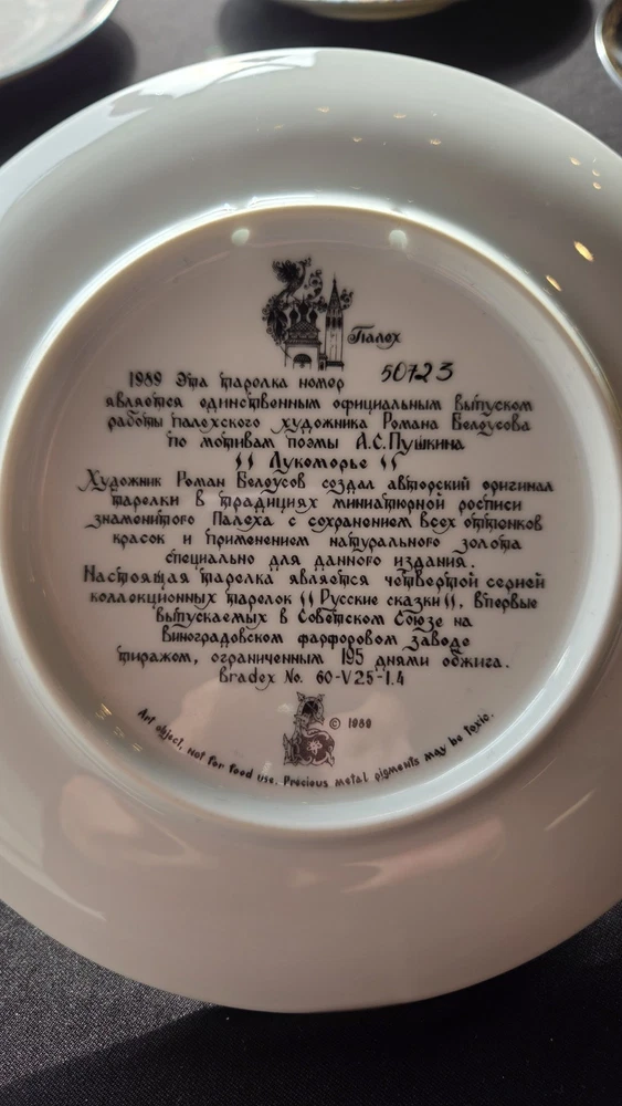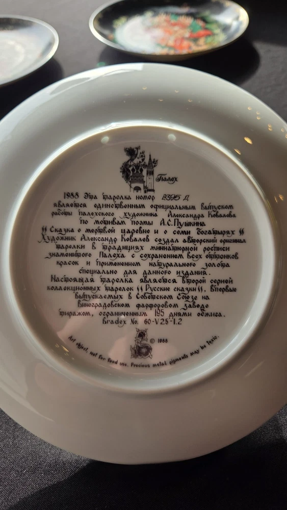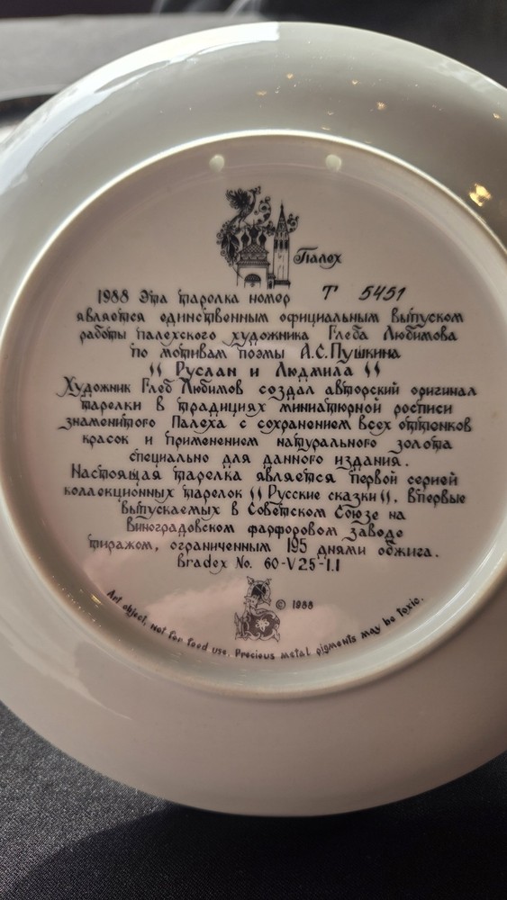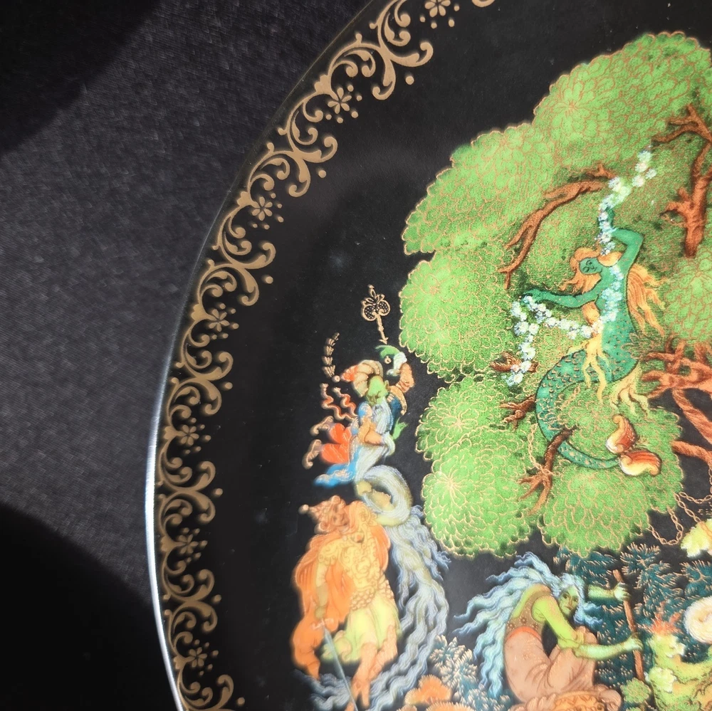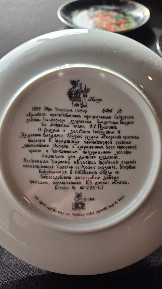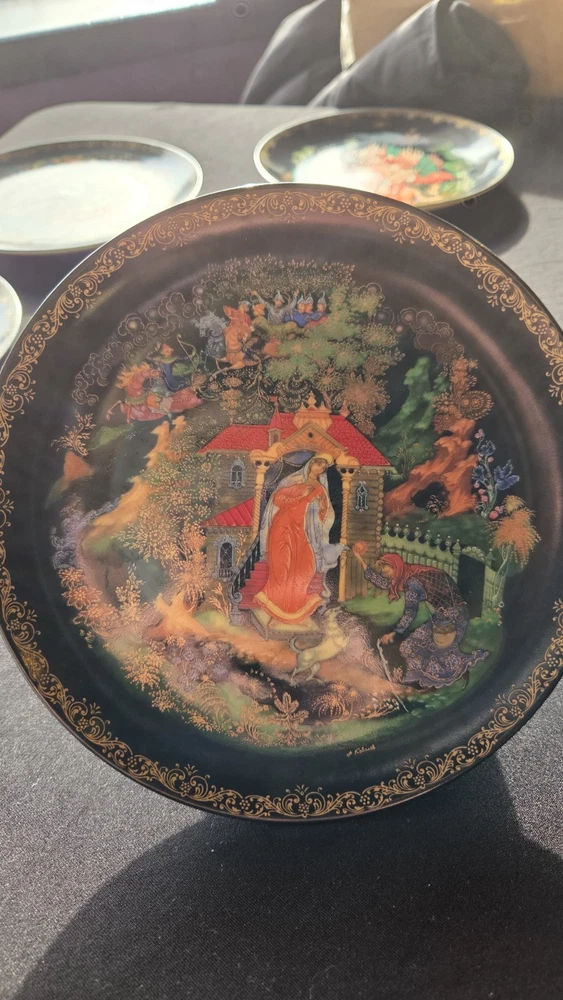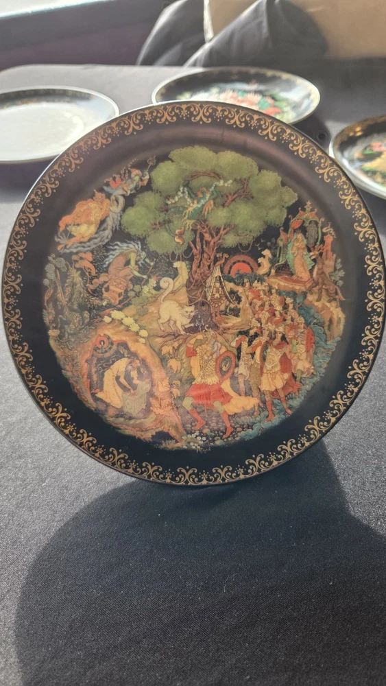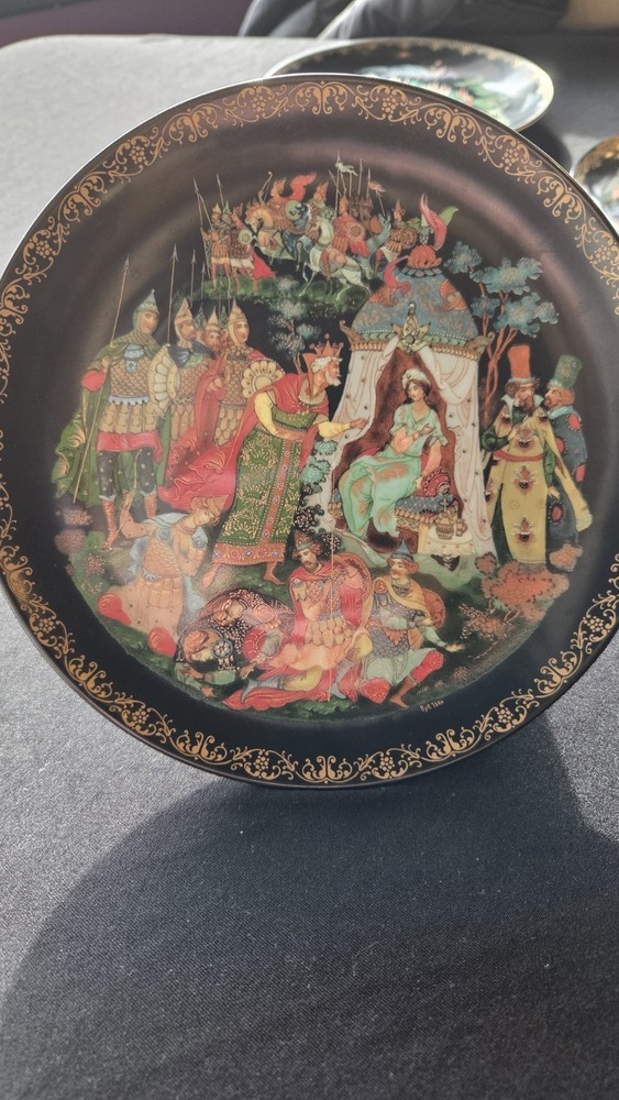 Shape: Round Style: Decorative Antique: No Era: Late 20th Century (1970-1999) Type: Collector Plate Occasion: All Occasions Production Style: Art Pottery Vintage: Yes Culture: Russian Color: Black & Multicolored Country of Origin: Russia Time Period Manufactured: 1980-1989 Brand: Tianex Material: Porcelain Production Technique: Pottery