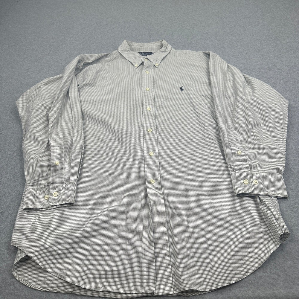 Elevate your everyday style with this sophisticated Ralph Lauren Yarmouth dress shirt. A timeless checkered pattern adds a touch of understated elegance, while the classic button-down design ensures versatility. The iconic pony logo embroidered on the chest signifies quality and refined taste. This shirt is perfect for a business casual office setting, a weekend brunch with friends, or a relaxed evening out. Color: White Department: Men Type: Dress Shirt Neck Size: 17 in Fit: Regular Sleeve Length: Long Sleeve Pattern: Check Material: Cotton, 100% Cotton Collar Style: Button-Down Character: Classic, Preppy Top Cuff Style: Barrel Cuff Features: Easy Care Neckline: Collared Keywords: Ralph Lauren, Yarmouth, Dress Shirt, Button Down, Long Sleeve, Checkered, Plaid, Men's Shirt, XL, Extra Large, Business Casual, Office Wear, Cotton Shirt