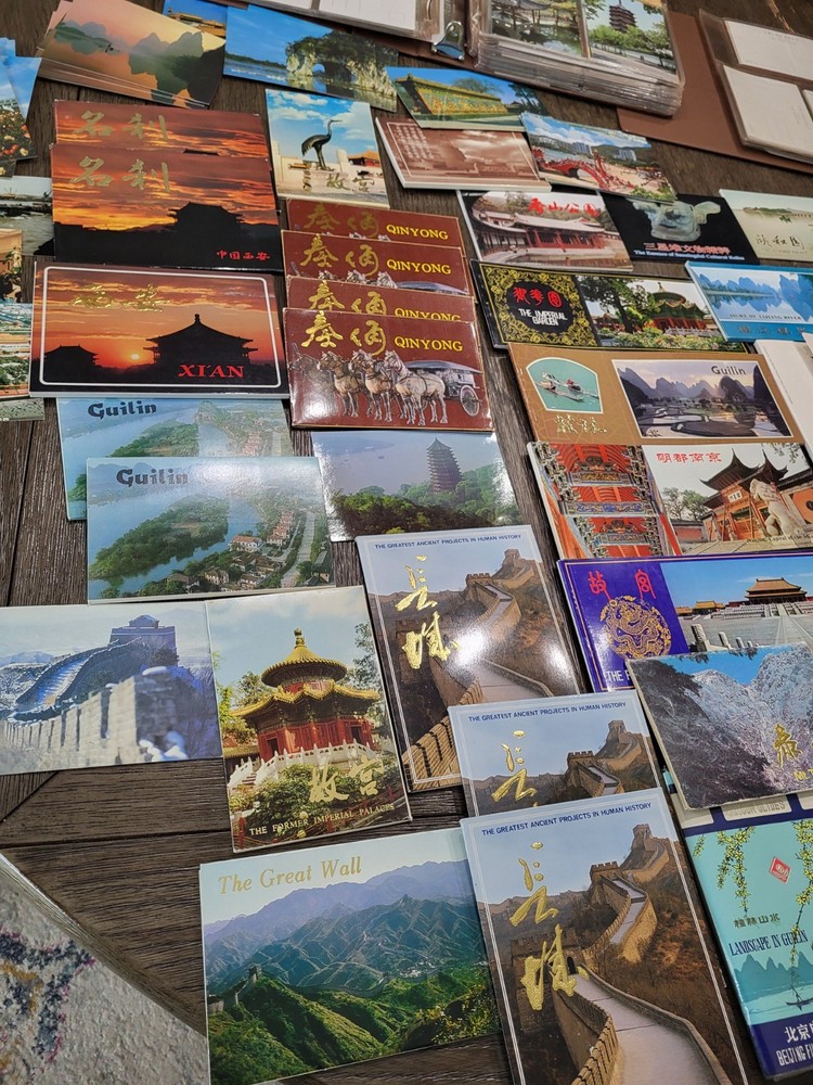 Also 2 binders full of cards color slides. All unused and new looks to be 70s-90s a ton of booklet sets all part of a world travelers estate and in great condition. This lot of over 1000 unused postcards from the 90s features souvenirs from various Asian countries including Japan, China, and Thailand. Each postcard showcases various themes related to travel, with a majority of them originating from Japan's Kantō region. Great wall, mount taishan, emperors tomb, gulin, beijing, hong kong, The collection also includes postcards from Bangkok, making it a diverse and unique addition to any postcard collector's stash. These original postcards offer a glimpse into the cultural essence of these Asian nations and are perfect for those interested in topographical post