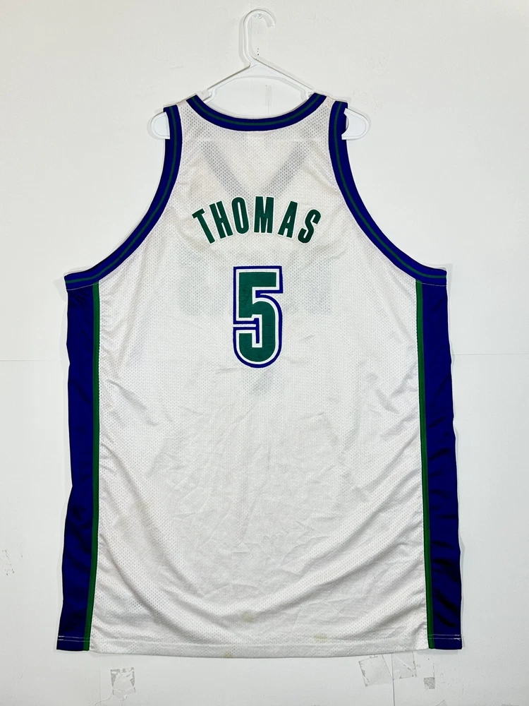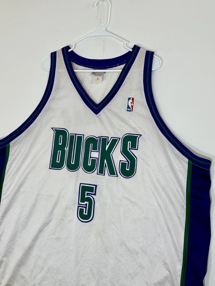 Vintage Reebok Authentic NBA Milwaukee Bucks Tim Thomas #5 Jersey Size 60 HUGE Sewn RARE Decent - to - pretty good condition overall - see ALL photos very closely - worn white jersey - only flaws little stains throughout - READ Massive huge jersey size - Size 60 - see tag Jersey is in pretty solid condition overall - has light - moderate wear/tear overall - however jersey has faint little stains/marks throughout both sides of the jersey - mostly on front side - some on back side too - stains are mid chest area to bottom trim throughout - little stains /marks small - mid size only flaws - see ALL photos very closely for condition of jersey Will ship with care