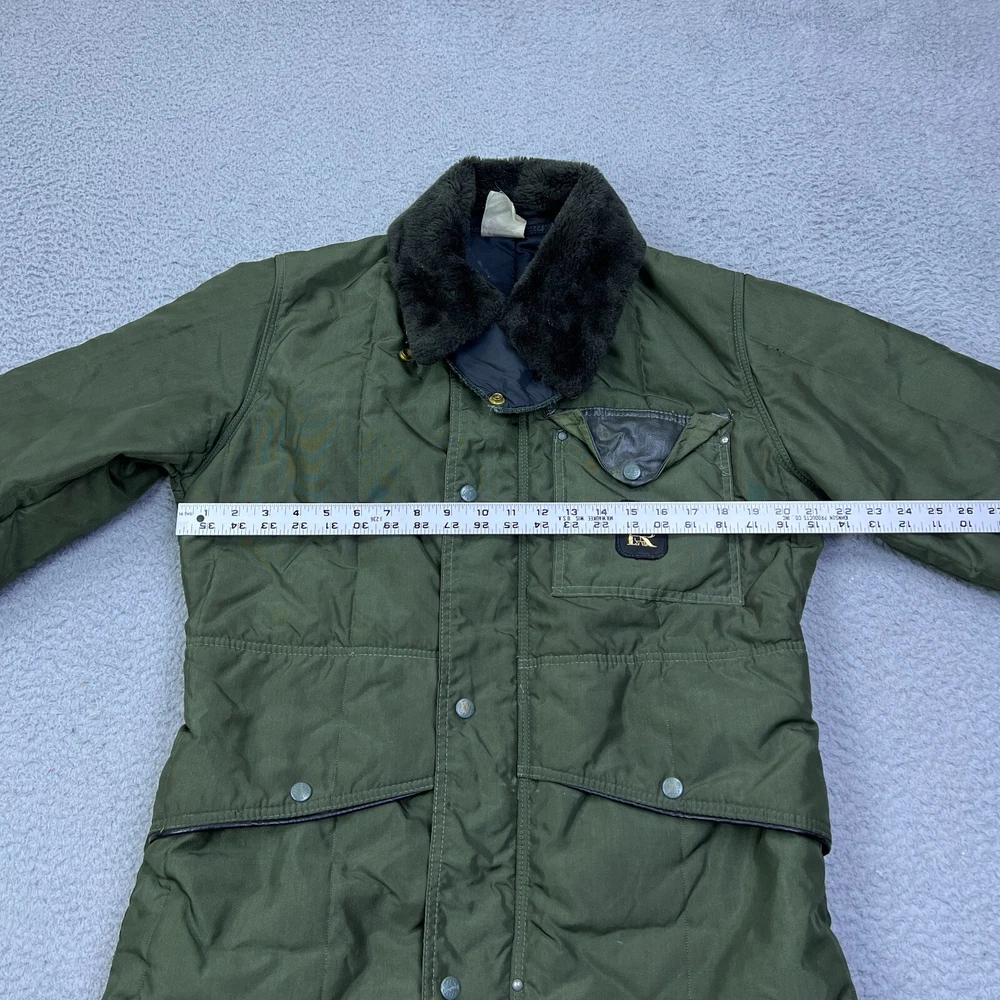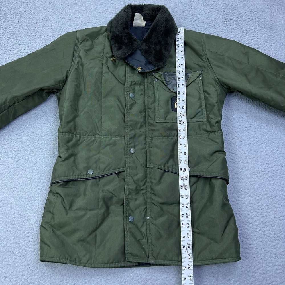 Accents: Logo, Zipper Country/Region of Manufacture: United States Outer Shell Material: Nylon Theme: Army, Designer, Dog, Retro, Ski, 70s Pattern: Solid Size Type: Regular Size: S Collar Style: Point Closure: Snap, Zip Occasion: Casual, Travel, Workwear Season: Fall, Spring, Winter Product Line: Iron Tuff Color: Green Features: Full Zip, Hooded, Insulated MPN: 392 Fabric Type: Softshell Model: Siberian Performance/Activity: Skiing, Walking Chest Size: 40 in Department: Men Personalize: No Brand: RefrigiWear Style: Puffer Jacket Handmade: No Vintage: Yes Insulation Material: Polyester Jacket/Coat Length: Long Fit: Regular Type: Coat Lining Material: Nylon Garment Care: Hand Wash Only