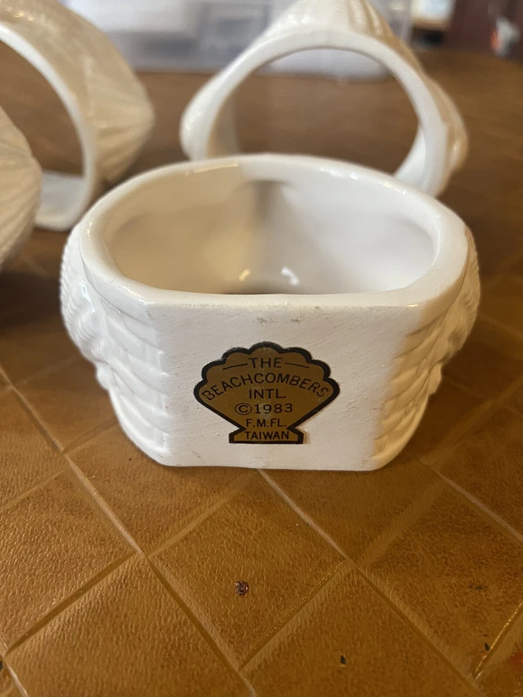 Vintage Beachcombers White Ceramic Seashell Napkin Rings FOUR. Condition is Pre-owned. Shipped with USPS Ground Advantage.