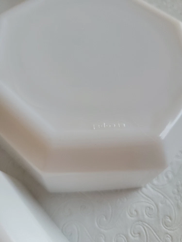 Enhance your dining experience with this vintage seven-piece bowl set from Arcoroc. The white milk glass bowls feature a geometric shape and a glossy finish that complement any table setting. Measuring six inches in diameter and one and a half inches in height, these bowls are perfect for serving salads, fruits, or desserts. The set includes six bowls and is impressed with the Arcoroc backstamp, which adds a touch of elegance to your tableware collection. Made in France during the 1980s, these bowls are a perfect addition to your decorative cookware, dinnerware, and serveware. No damage has been noted. E-mail me with questions. Thanks for checking out my auctions!