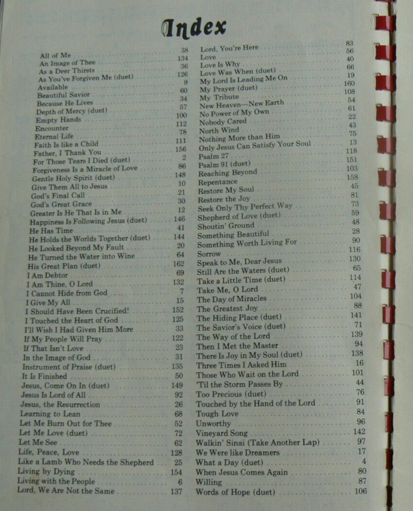 Seller Notes: “Cover has lots of creasing; couple of paper clip marks and a name on cover page” Year: 1978 MPN: MB-448 Genre: Religious & Devotional Publisher: Lillenas gtin13: Does not Apply UPC: Does not Apply Country/Region of Manufacture: United States Ensemble: Solos & Duets Format: Book Subgenre: Contemporary Christian solos & duets