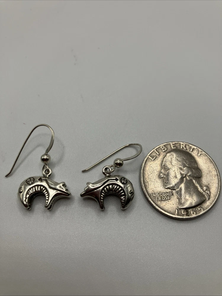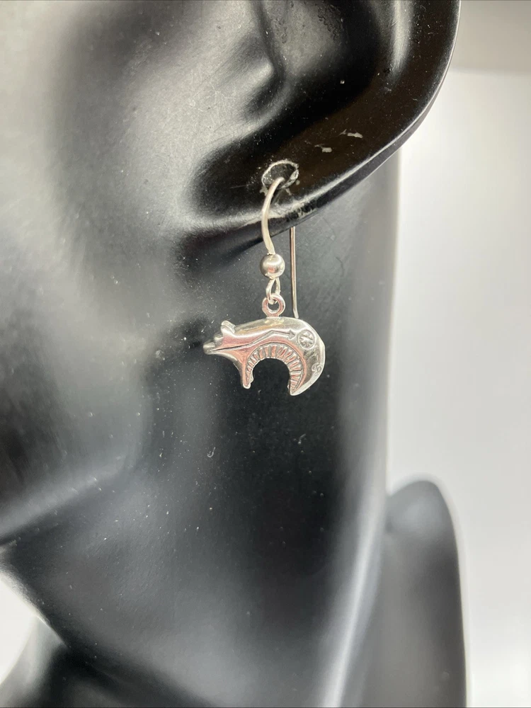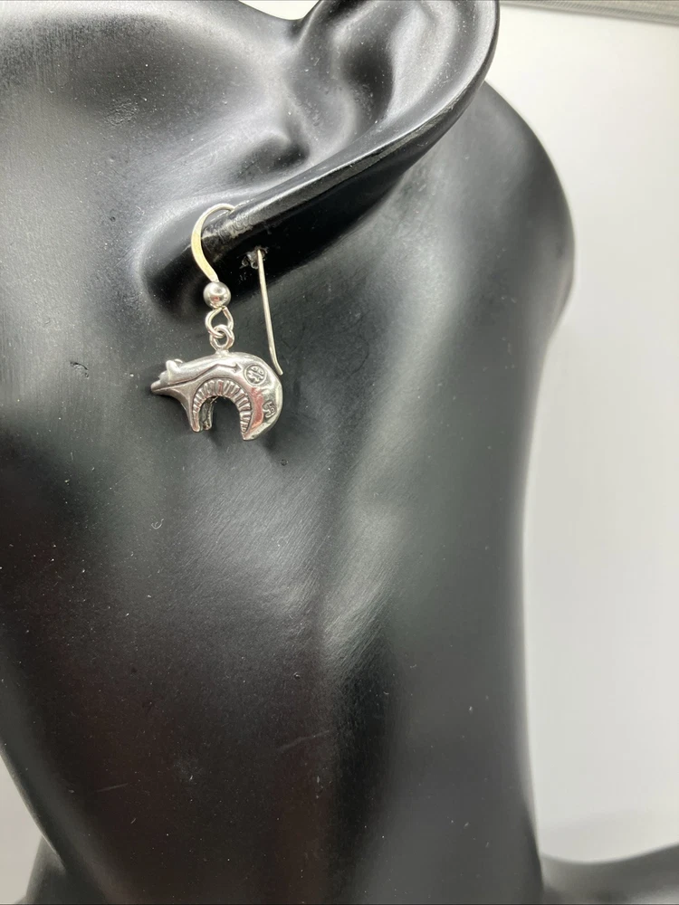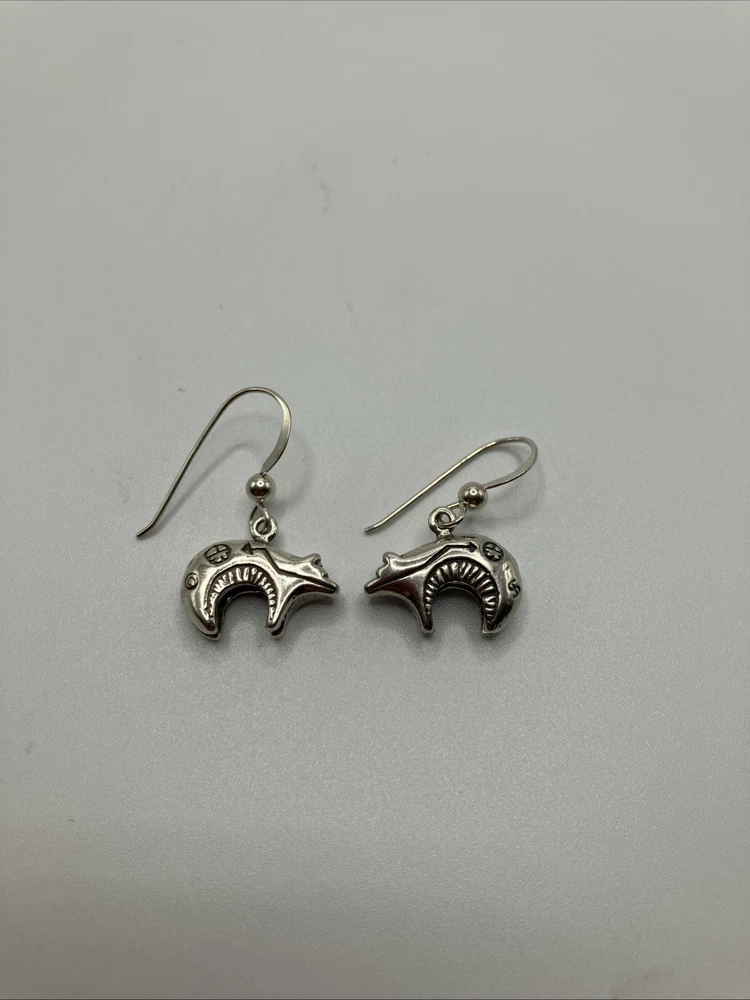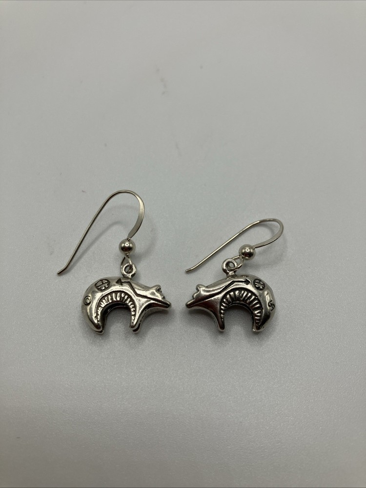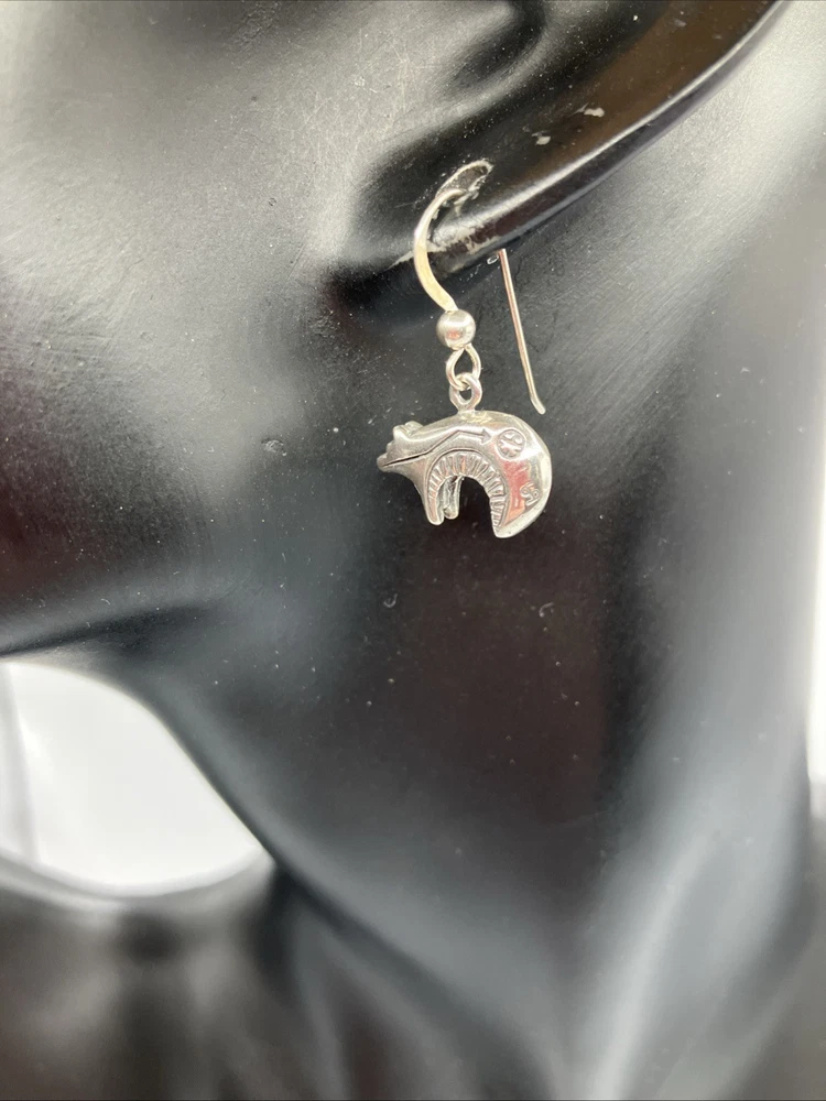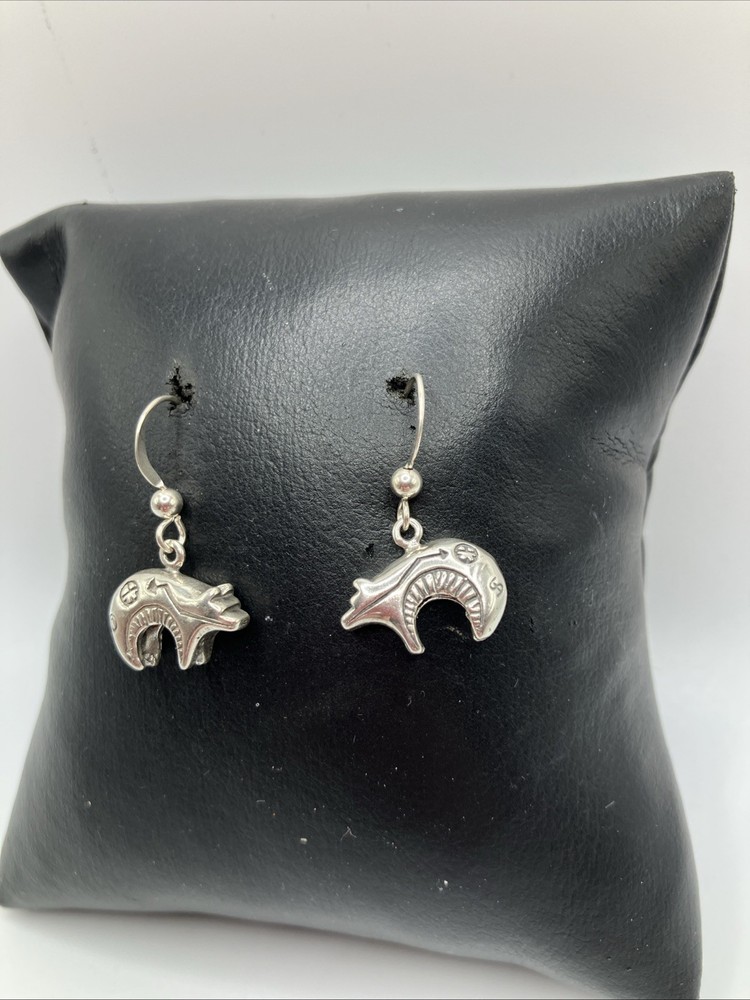 These beautiful vintage Bear earrings are crafted from 925 sterling silver and weigh 5.5 grams. Copper colors are skin tone reflections. Very Nice condition, some scuffs and scratches, needs a polish. PLEASE CHECK OUR OTHER AUCTIONS AS WE HAVE A LARGE COLLECTION OF SOUTHWEST STERLING JEWELRY. ALL LISTINGS STARTING AT .99 NO RESERVE. PLEASE FEEL FREE TO ASK ANY QUESTIONS . THESE ITEMS ARE VINTAGE OR ANTIQUE AND SHOW SOME SORT OF USE NONE ARE BRAND NEW. WE DO ACCEPT RETURNS IF NOT AS DESCRIBED! WE DO COMBINE AUCTIONS THANK YOU