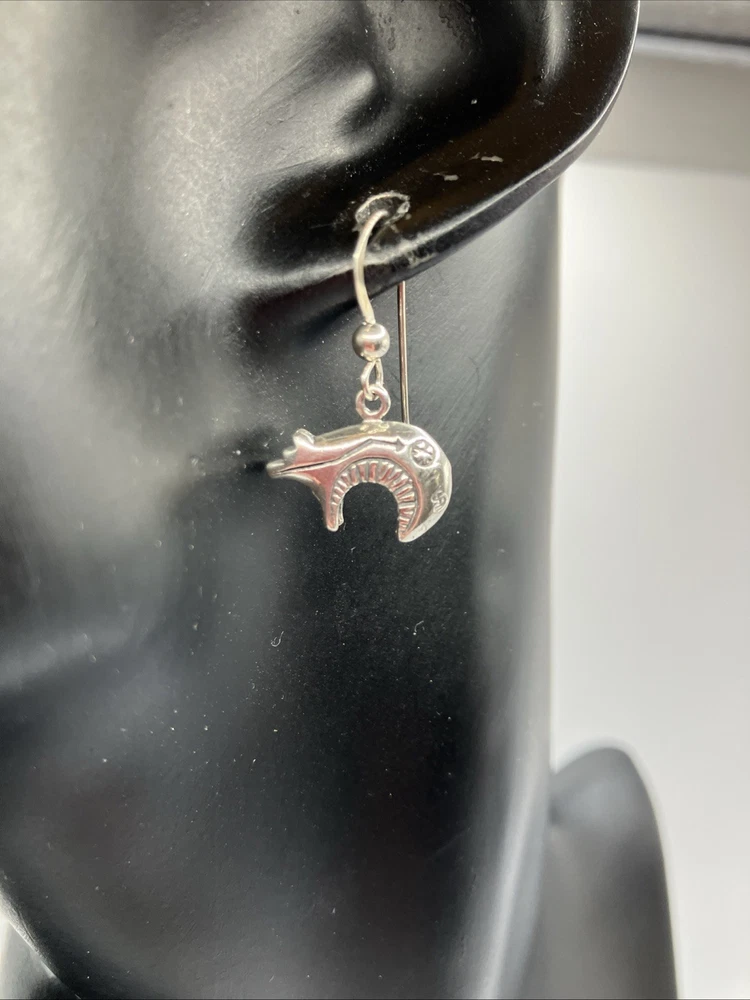 $ 15.84RUNNING BEAR Sterling Silver Navajo DANGLE EARRINGS Blue Turquoise SCROLL TRIM
