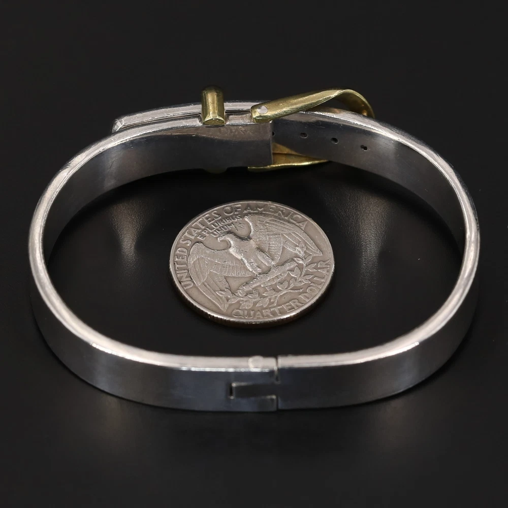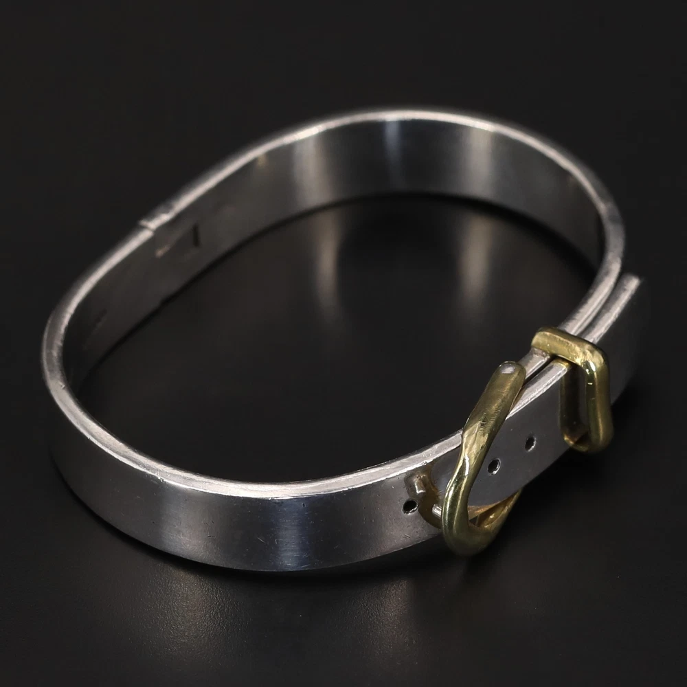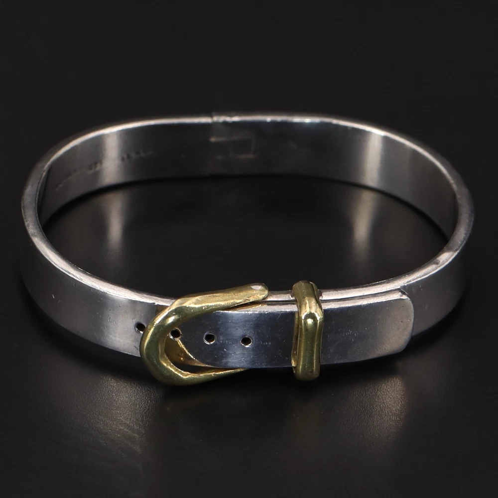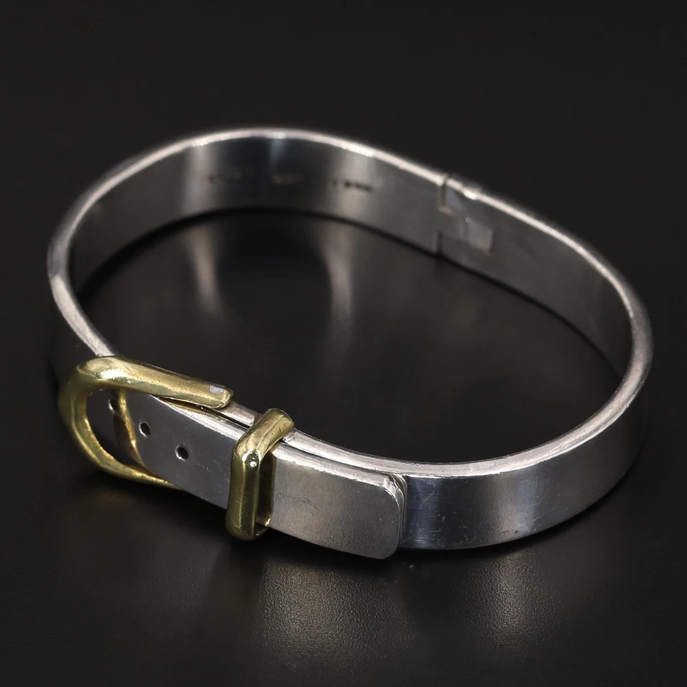 Metal Purity: .925 Sterling Silver Width: 10mm (approx.) Wearable Length: 6.5" (approx.) Weight: 50g VTG Sterling Silver - MEXICO Two-Tone Belt Buckle 6.5" Adjustable Bracelet - 50g Payment Shipping Returns Payment Payment Shipping Returns Payment Orders must be paid in full within 7 days of your auction ending. If you plan on purchasing additional items within that 7 day window, please wait to pay until all auctions have ended so that we may combine shipping. Automated cancellation will occur due to non-payment within the 7 days timeframe. Payment Shipping Returns Shipping Payment Shipping Returns Shipping Orders ship Monday - Friday (excluding national holidays) and all orders ship within 1 business day. Our standard rates apply for all orders: USA - $4.00 for first item & .50 for each additional. (Total shipping cost capped at $9) PRIORITY USA - $8.50 for first item & $1 for each additional. (Total shipping cost capped at $13.50) Payment Shipping Returns Returns Payment Shipping Returns Returns We want you to be happy with your purchase! Should that ever not be the case, we will gladly accept any return with a "no questions asked" policy. Return items in the condition they were received within 30 days for a full refund and initiate your return through the eBay return center. We are happy to answer questions Monday - Friday 9a.m. - 5p.m. Metal Purity: .925 Sterling Silver Width: 10mm (approx.) Wearable Length: 6.5" (approx.) Weight: 50g Listing and template services provided by inkFrog