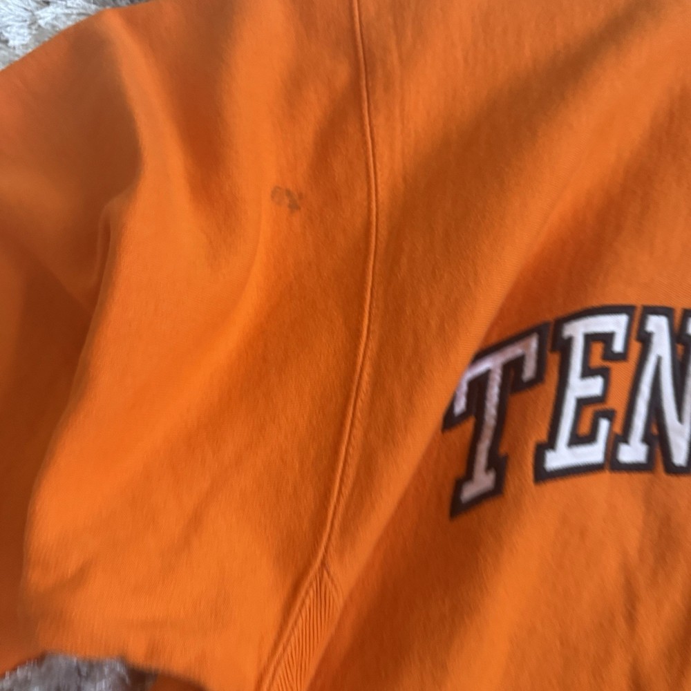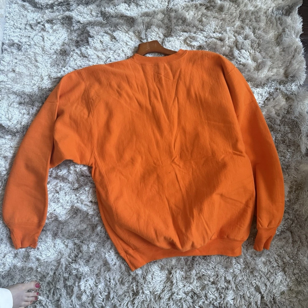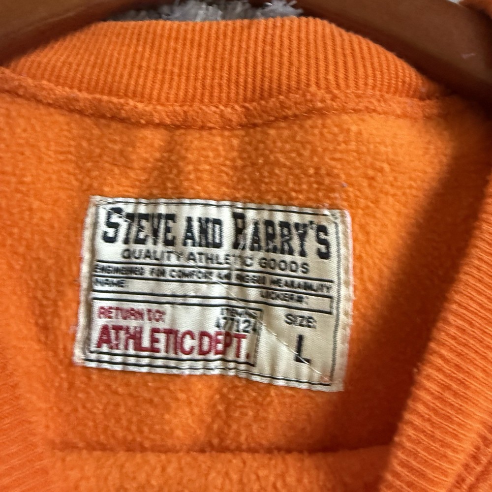 The VTG Steve & Barry's Tennessee Heavy Sweatshirt is a vintage-inspired piece featuring a crew neckline and long sleeves, making it perfect for the winter, fall, and spring seasons. This pullover sweatshirt in size L is made from a blend of polyester and cotton, providing a comfortable and warm fit. The orange color and embroidered logo accents give it a sporty and 90s-inspired look, ideal for any casual outfit. Easy to care for with machine washable instructions, this sweatshirt is a stylish and practical addition to any wardrobe. There is a small stain and it is pictured