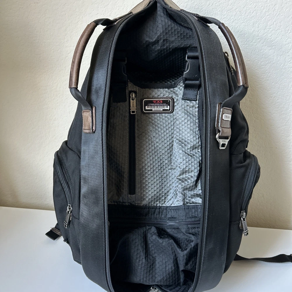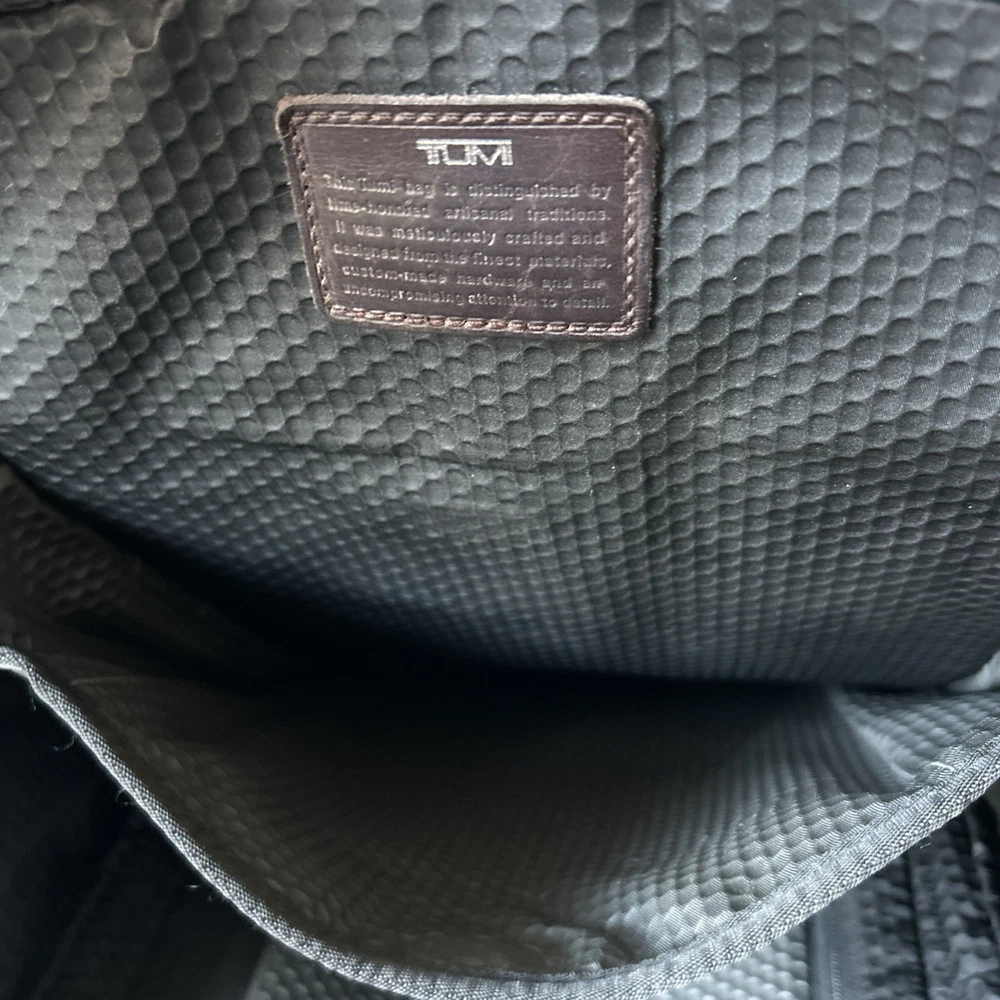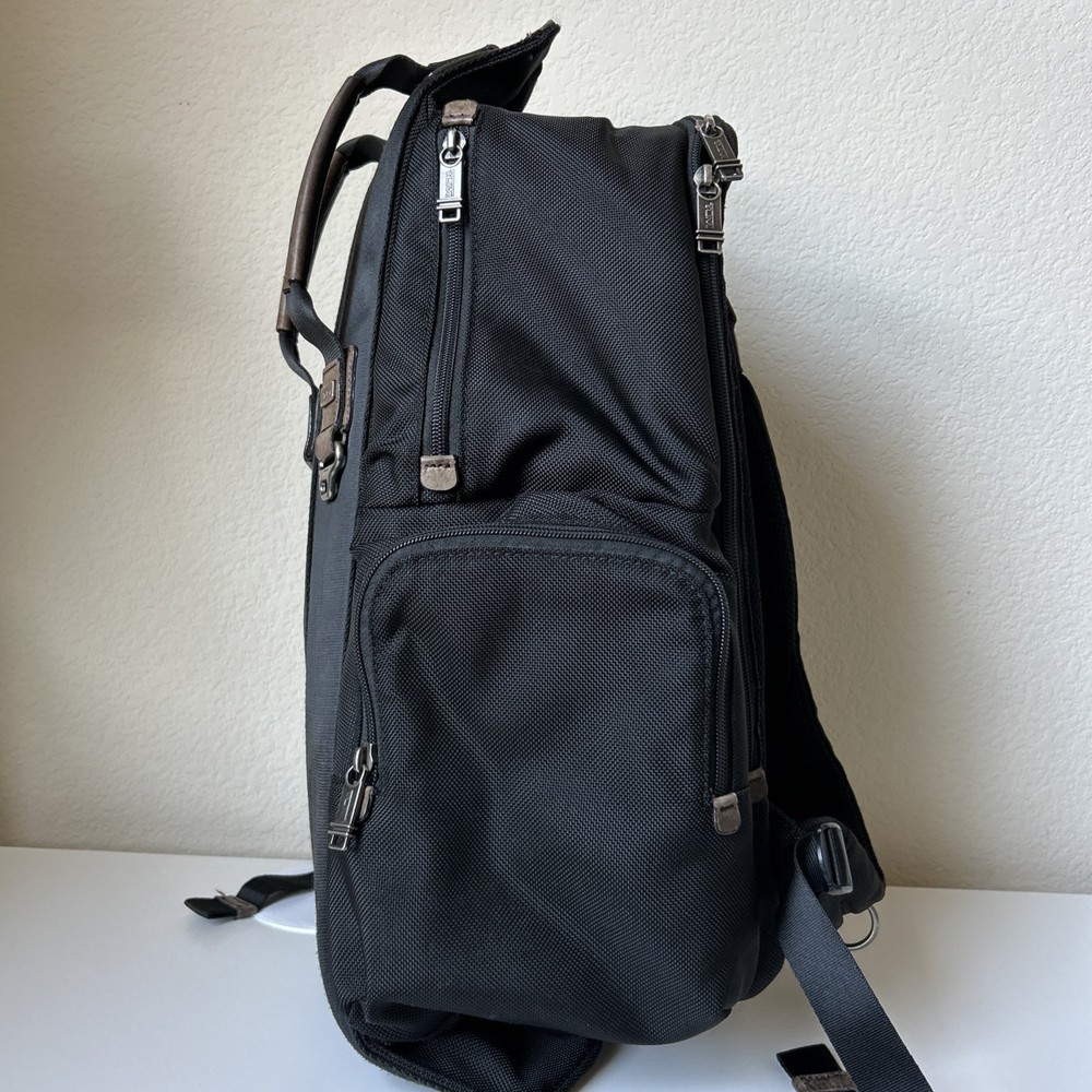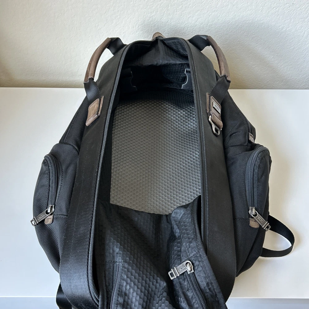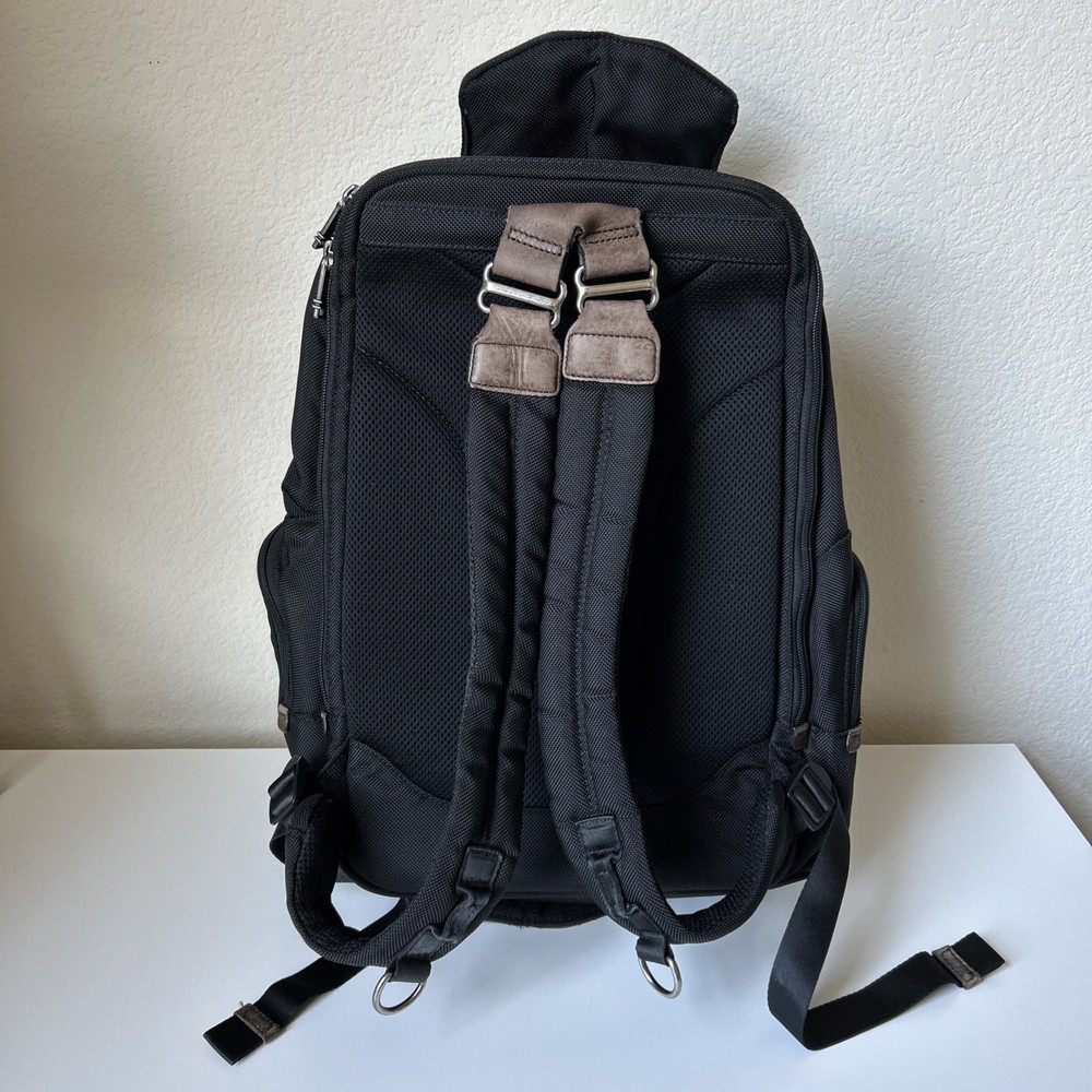Vintage TUMI Alpha Bravo Travis 22383HKH Black Backpack Luggage See all pictures for cosmetic conditions Shows signs of previous use One pocket has two holes- missing rivet/ring Missing TUMI tag Overall, good condition Sold as pictured