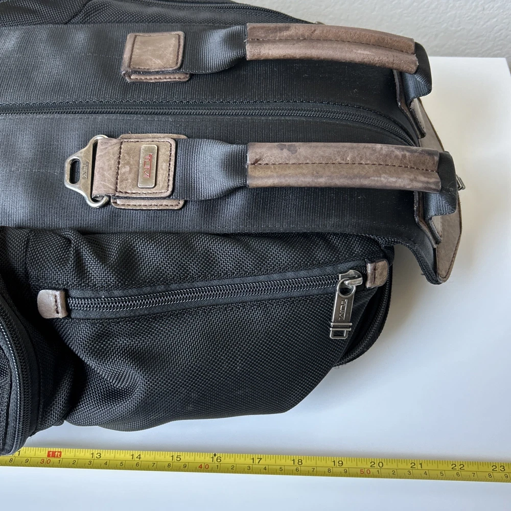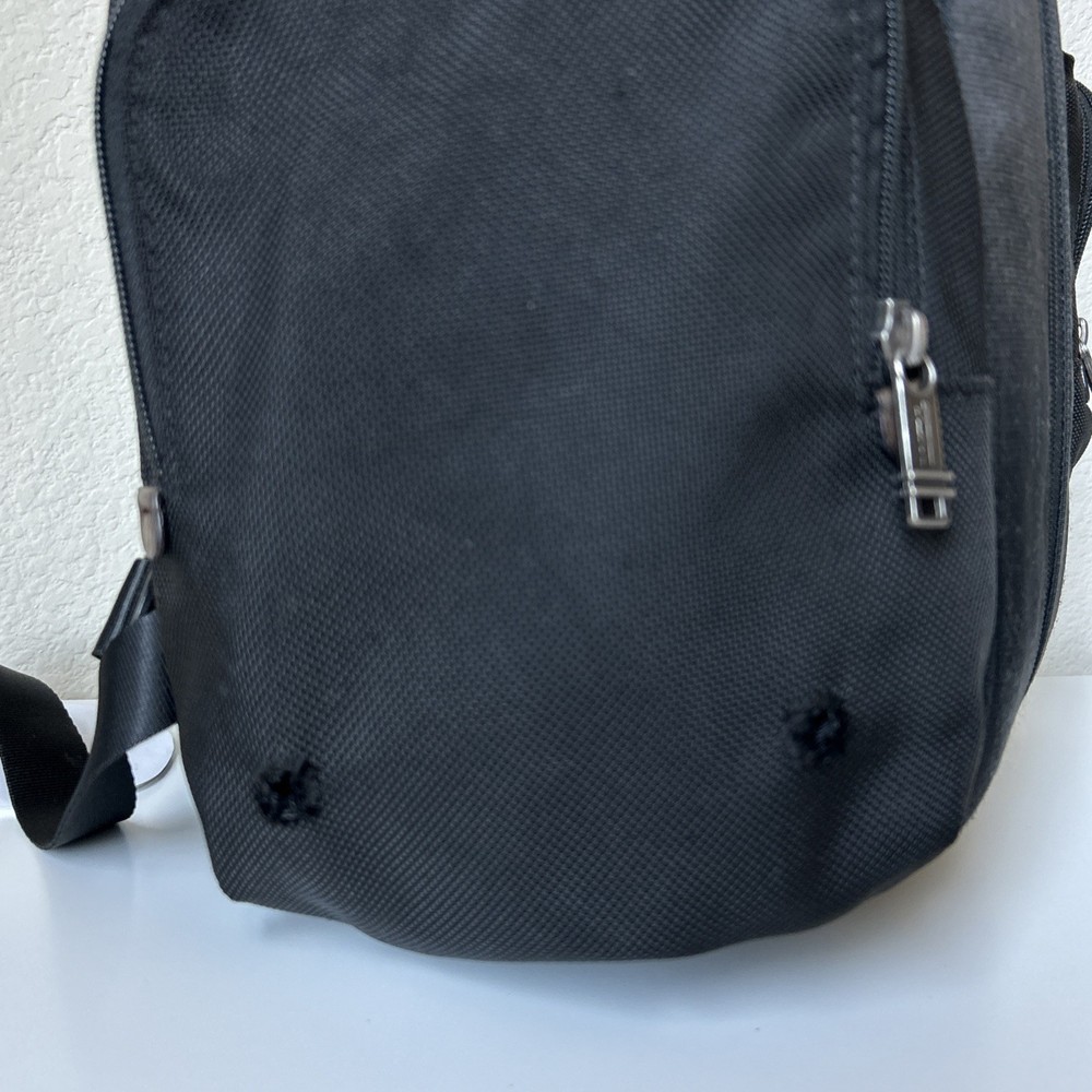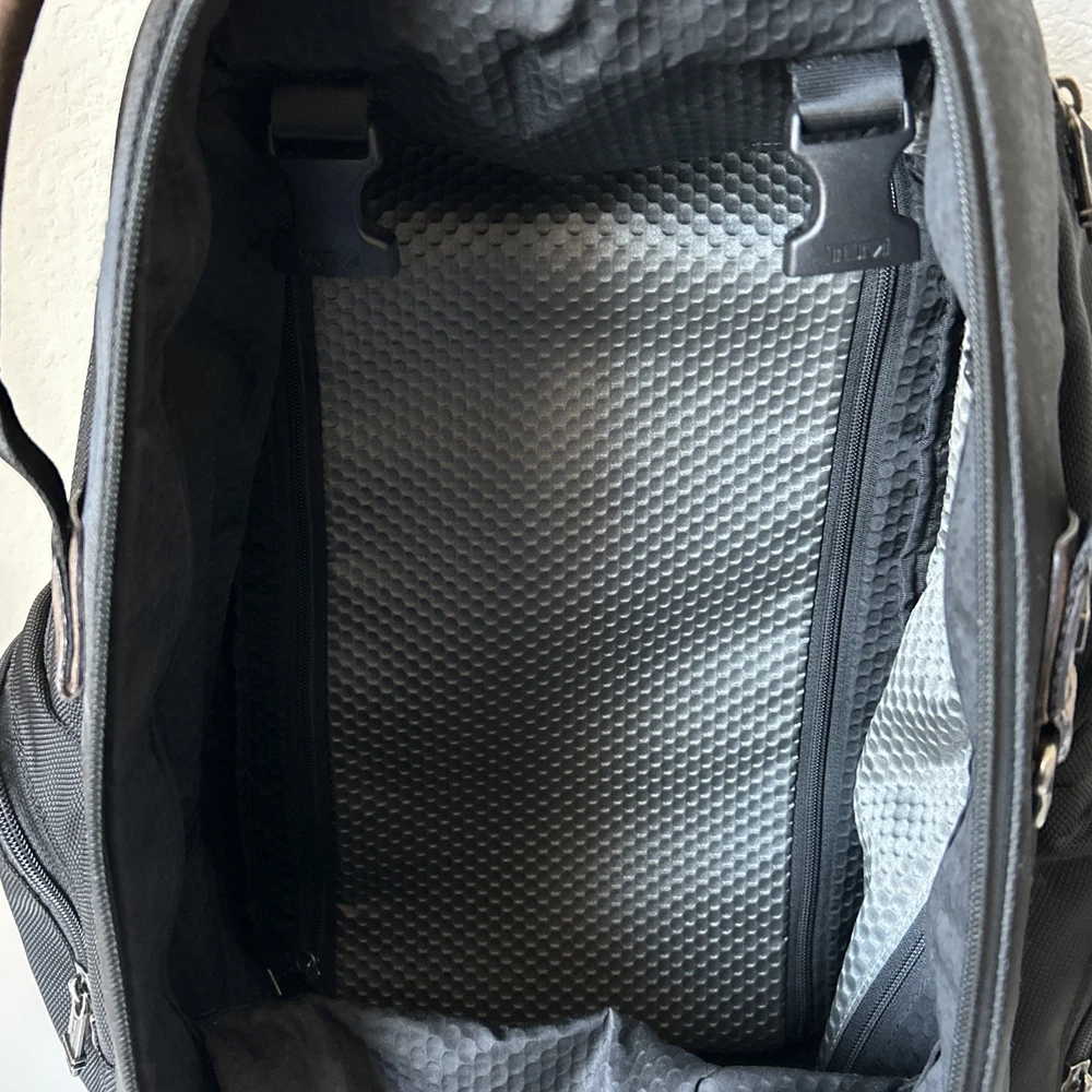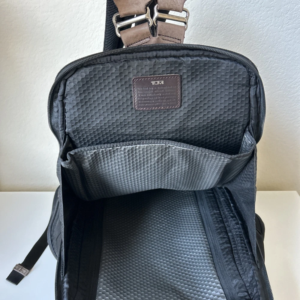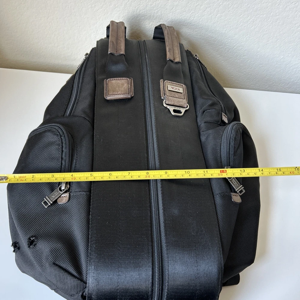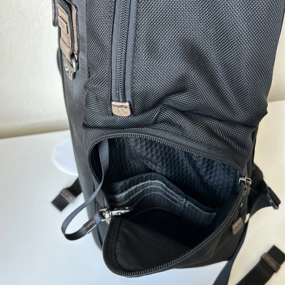 Vintage TUMI Alpha Bravo Travis 22383HKH Black Backpack Luggage See all pictures for cosmetic conditions Shows signs of previous use One pocket has two holes- missing rivet/ring Missing TUMI tag Overall, good condition Sold as pictured