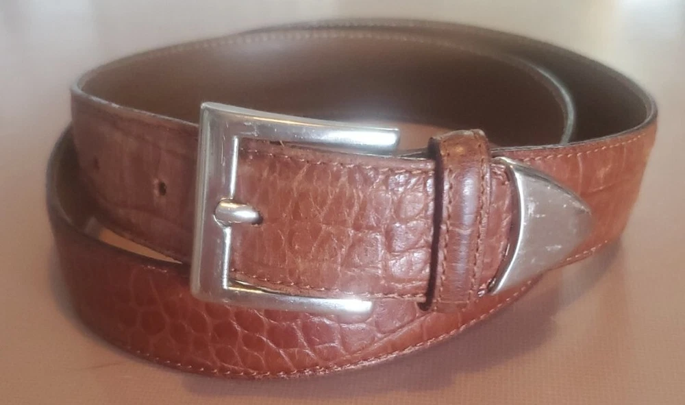 VTG Talbots Leather Belt Men's 36 6003 Snakeskin Style Italy Silver Tongue. Very Nice Pre Owned Condition. Some Light Marks On Metal