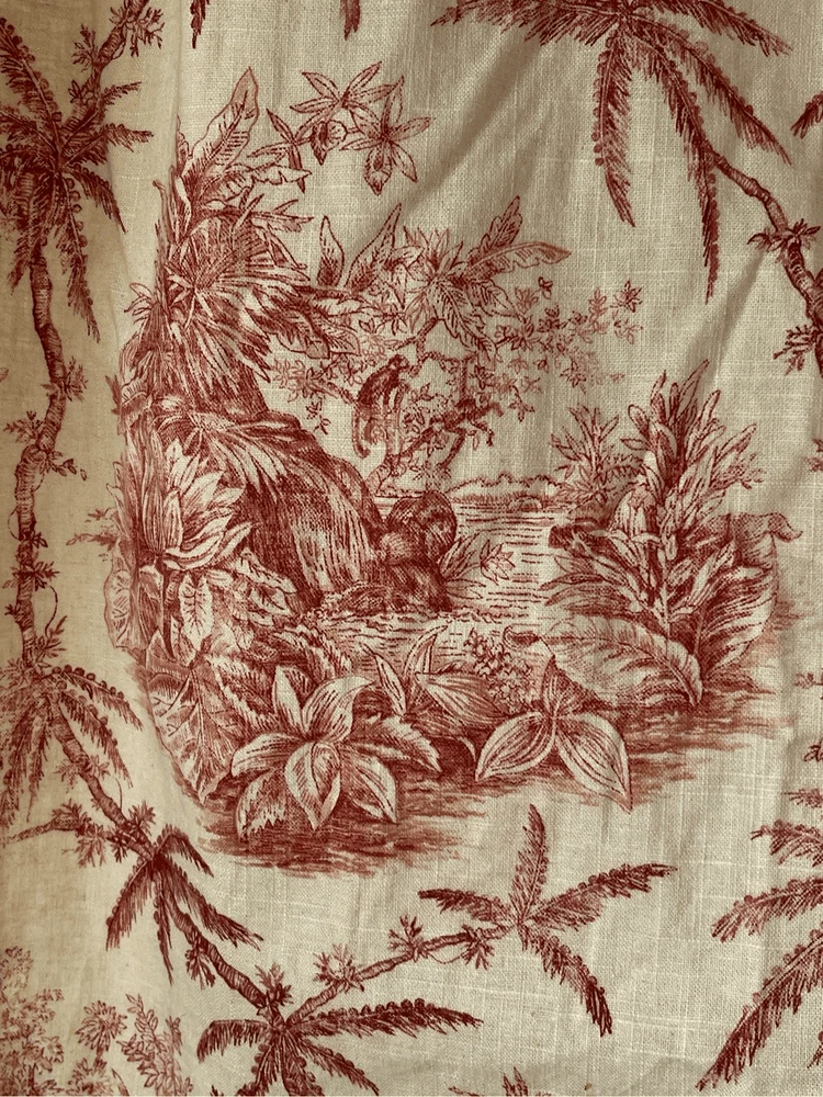 Vintage The Four Continents Toile Drape Curtains Cream Red OS VERY HEAVY and Lined fabric Tropical Jungle Monkeys Elephant Giraffe Goats This vintage toile drape curtains will add a touch of timeless elegance to your home. Featuring the iconic "The Four Continents" design by Jean-Baptiste Huet, these curtains showcase intricate details and a rich history. The heavy, high-quality fabric ensures both durability and a luxurious drape. Perfect for creating a sophisticated and classic ambiance in any room. Brand: Unbranded Department: Home Size: OS (One Size) Color: Cream with Red Style: Drape Curtains Closure: Rod Pocket Pattern: Toile Pattern Material: 100% Cotton Condition: Excellent ACCEPTING ALL FAIR OFFERS MEASUREMENTS IN PICTURES upcycle secondhand recycle sustainable clothing DeLaLunaShop333 #DeLaLunaShop333