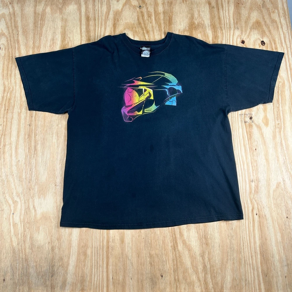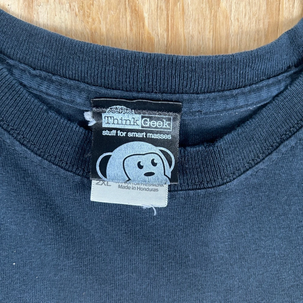 This limited edition ThinkGeek t-shirt features a graphic print of a motorcycle rider helmet, perfect for anyone who loves the biker lifestyle. Made from lightweight cotton fabric, this shirt is easy to care for and preshrunk, making it suitable for all seasons. The crew neck and short sleeves provide a comfortable fit, while the black color and solid pattern make it a versatile addition to any wardrobe. Ideal for fans of art, rock, and hippie themes, this shirt is sure to make a statement. It comes in a size 2XL and is suitable for men who want to show off their love of motorcycles. Whether you're hitting the open road or just want to add some color to your wardrobe, this t-shirt is the perfect choice. SKU: FB-06-147