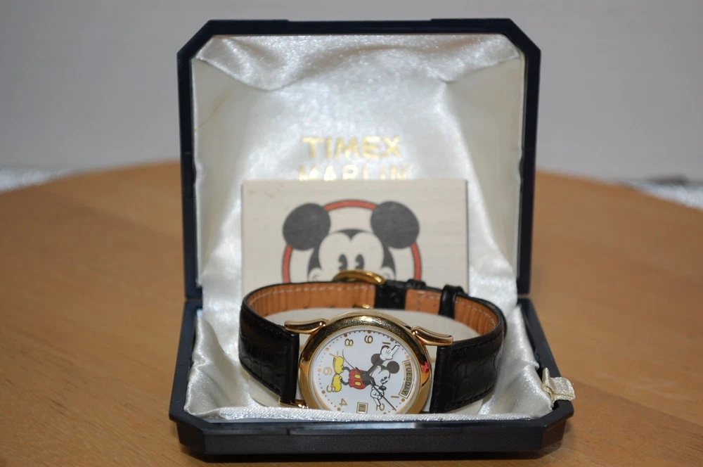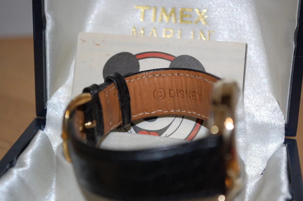 We do our very best to put quality items in our store, but if you are unhappy with your purchase we accept returns thru eBay's 30-day money back guaranty. We will ship same day, if possible, otherwise the next day Monday thru Friday. Thank you for shopping with us. Items ship Quickly. This vintage Timex Marlin watch is a must-have for any Disney fan. With its Mickey Mouse design, this watch is a unique and exclusive piece from The Disney Store. Made in Japan in 1996, it features a day and date function, making it a practical addition to any collection. The watch is sure to impress any watch collector or Disney enthusiast.
