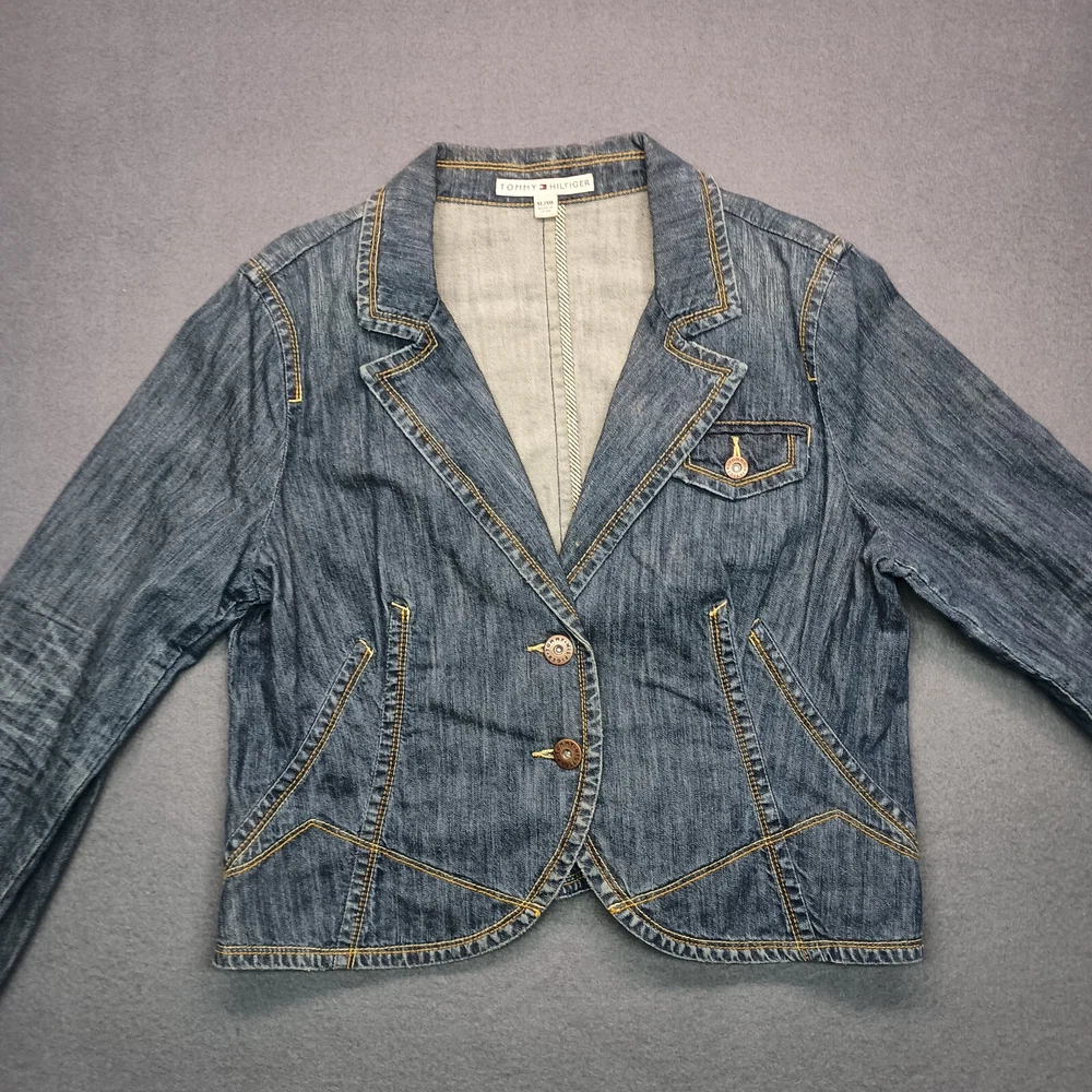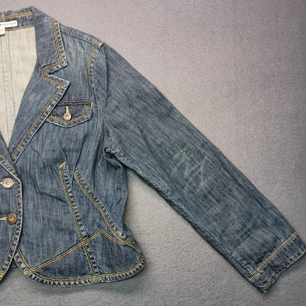 VTG Tommy Hilfiger Denim Blazer Womens XL Elbow Patches Two Button Jacket Y2K Excellent pre-owned condition. No obvious flaws. See photos for measurements.