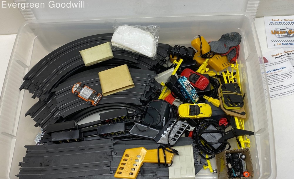 Tyco Mixed Lot Slot Cars, Tracks & Parts Brand: Tyco Type: Mixed Lot Slot Cars, Tracks & Parts Condition: Good - shows some sign of wear Approximate Measurements (inches): 22.5L x 16W x 6H Additional Details: **we don't inventory lots ; open box maybe incomplete* Evergreen Goodwill helps people get jobs across Northwest Washington by offering high-quality free job training, education and job placement. We empower individuals to overcome barriers to working by providing comprehensive support and connecting them with life-changing job opportunities, ensuring they are career-ready and can support themselves and their families. ***Disclaimer*** All items were donated to Evergreen Goodwill of Northwest Washington with no history or provenance. The auction is for all items pictured. Items may need servicing and/or benefit from a cleaning upon arrival. Please see photos for additional details and feel free to ask questions. PAYMENTS Please note that your entire order will be canceled by eBay if the oldest item exceeds 7 days without payment. Once an order is canceled, we are unable to re-invoice and the item will be relisted. For a combined shipping invoice, please send us one request within 3 days of winning the first item to avoid cancelation of your entire order. Once a combined invoice has been sent, we are unable to add additional items to the invoice. SHIPPING Local pickup only available to items listed as Local Pickup at this time. Interntaional shipping is not available at this time. We offer combined shipping as long as items will ship safely together. Auctions must end within 5 days of each other to be eligible for combined shipping. Please hold off on payment until all auctions have ended then proceed to checkout. Please do not pay for any items individually if you wish to have them combined - they must be paid at the same time. Items listed for flat-rate shipping are not eligible for combined shipping. PO Box addresses will require USPS shipments as FedEx Ground will not deliver. If FedEx is selected we may need to invoice for additional shipping costs.