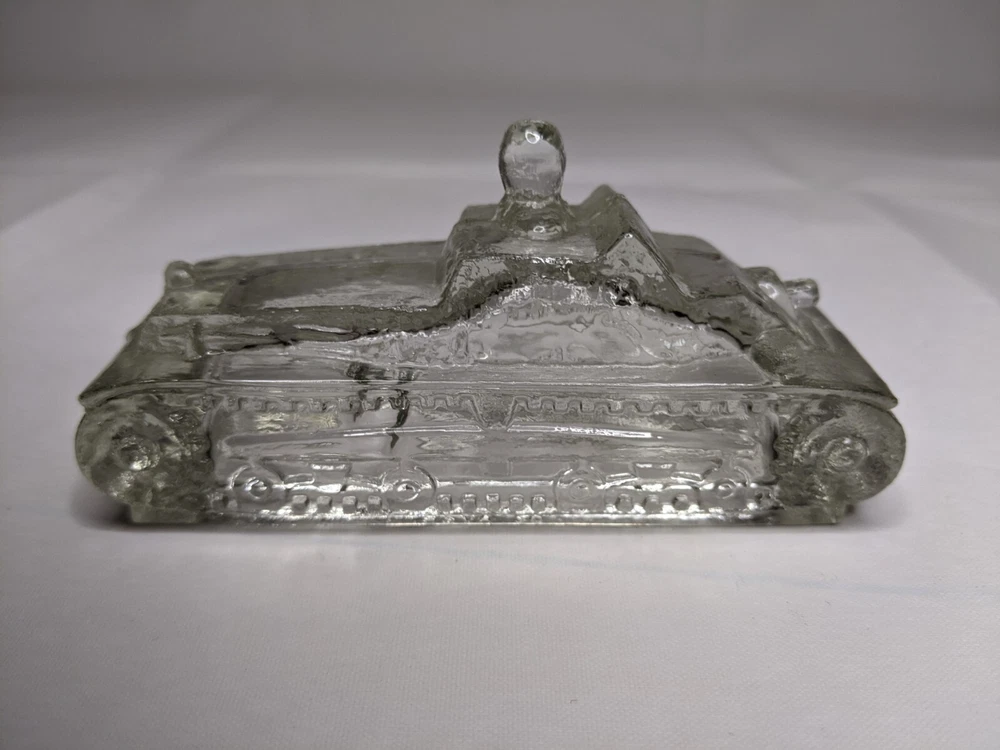 VTG VICTORY GLASS TOY CANDY CONTAINER ARMY TANK 1940's