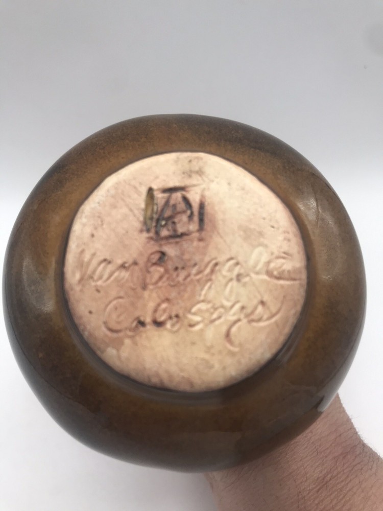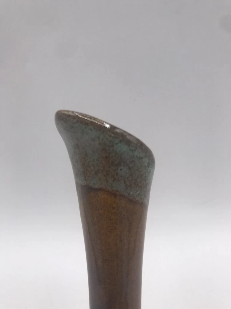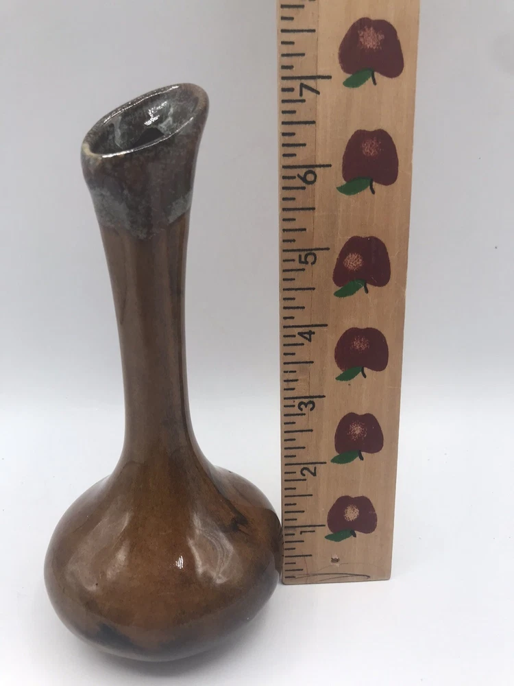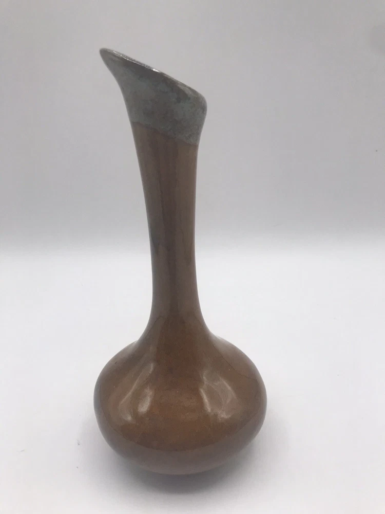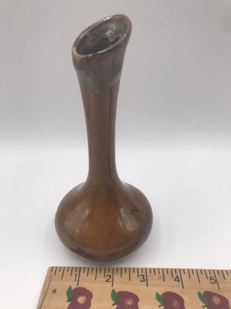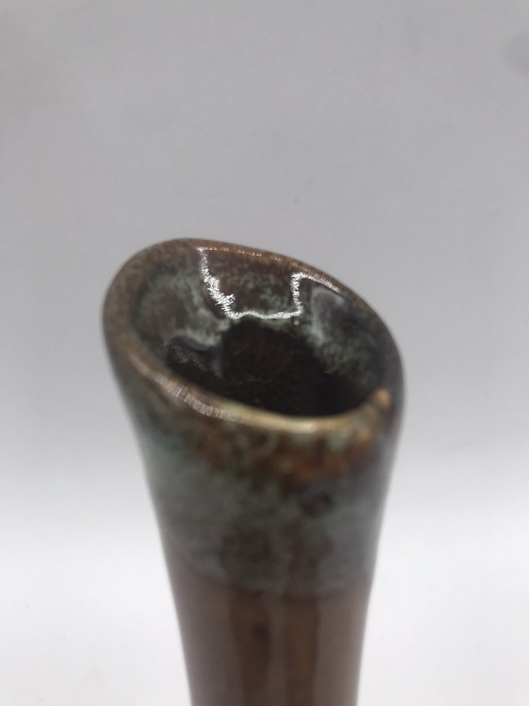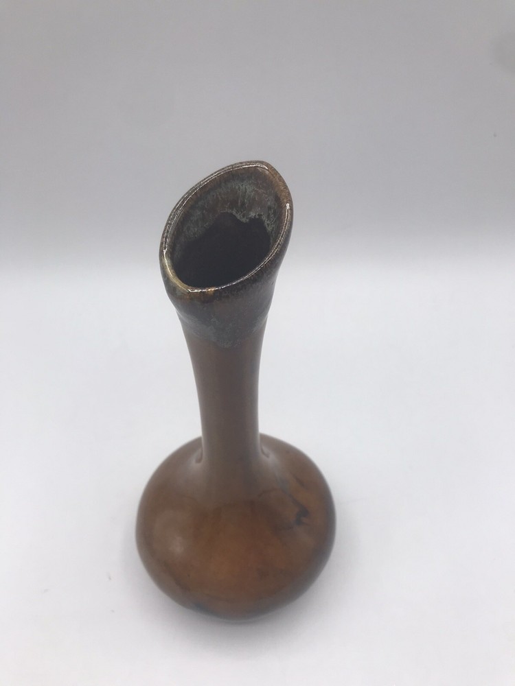VTG Van Briggle Colorado Sprgs Bud Base Gloss Browns w/ Turquoise Drip Overflow. Condition is Used. Shipped with USPS Ground Advantage.