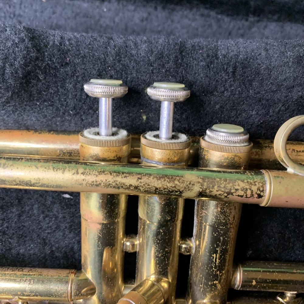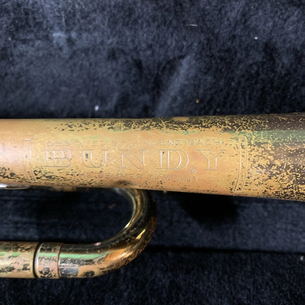 VTG Vincent Bach Bundy Trumpet w/ Hard Case "For Parts or Repair" USA. Very poor condition. Dents. Heavy wear. Most slides are stuck. As-is.