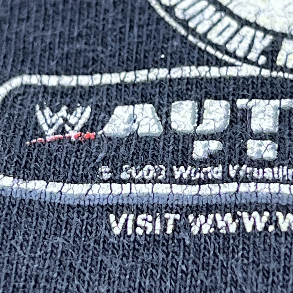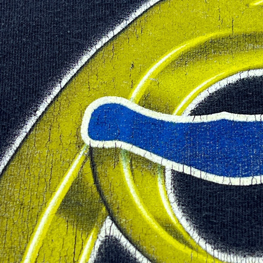 Used vintage condition with cracking in the graphic as seen in photos I recommend measuring yourself before ordering online to help find the perfect fit for you. Please view all photos and reach out with any questions- thank you
