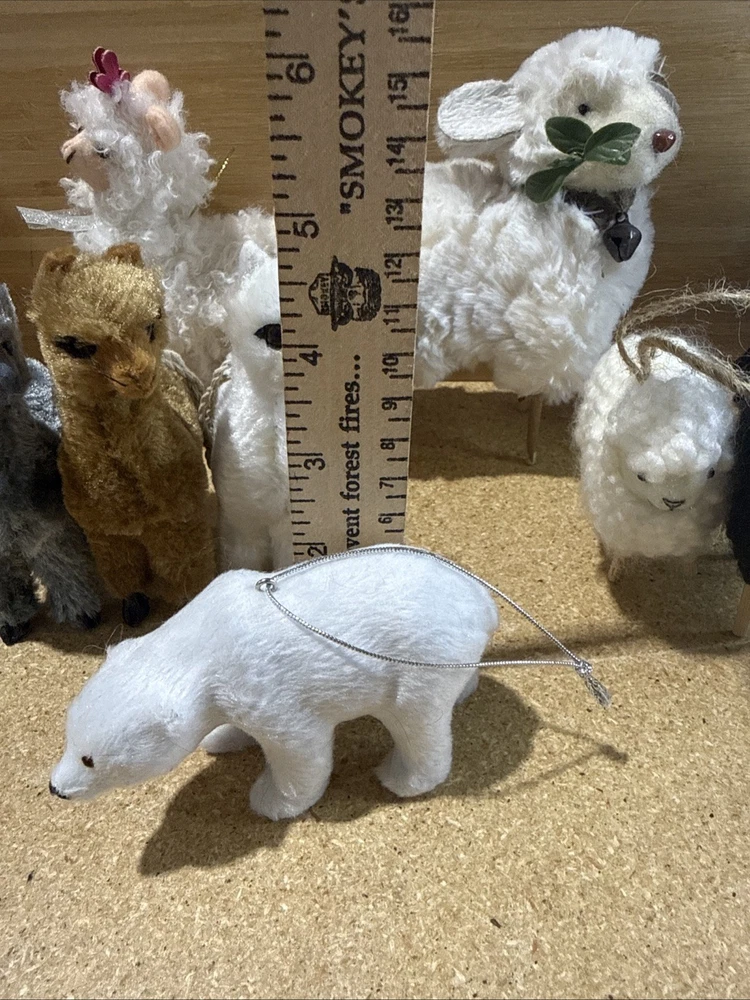Mixed craft and décor lot of wool and flocked animal figurines, sold together for crafters, DIY decorators, and creative reuse. This lot includes a variety of animals in different sizes, textures, and colors. Many pieces appear to have been used as ornaments, as several include hanging loops or attachment points. These are mixed materials, styles, and makers and are being offered as a craft/decor lot, not as individual collectibles. Some pieces show light wear, small imperfections, or minor flaws consistent with age, use, and storage. Overall, they have great texture and character and are ideal for holiday crafts, farmhouse or cottagecore décor, wreath-making, dioramas, mixed-media projects, or creative repurposing. One polar bear included that doesn’t really fit the farmhouse vibe but didn’t want him to be left behind! Sold as one lot only. Individual pieces are not separated. Condition: Mixed condition. Some pieces show minor wear, small defects, or age-related imperfections. Nothing major observed, but expect variation. Please review all photos carefully, as they are part of the description and best represent condition. ✨ Packing & Shipping Note: These will be packed with extreme care using extra cushioning materials to ensure safe arrival! 📦 Combined Shipping: We’re happy to combine shipping and offer a discount when you purchase multiple items.