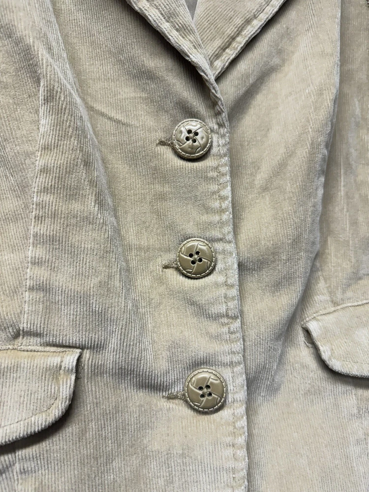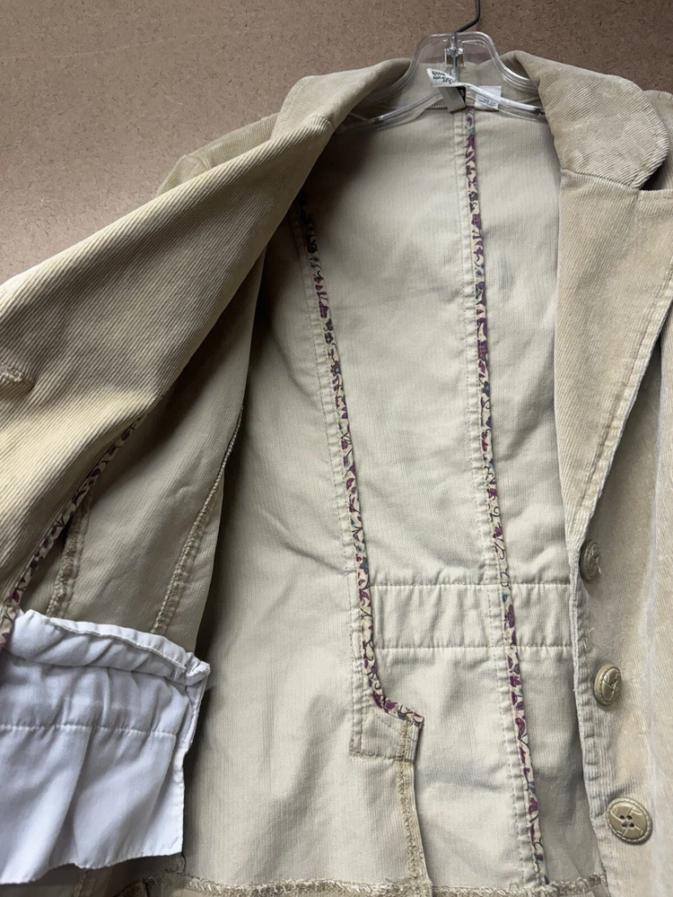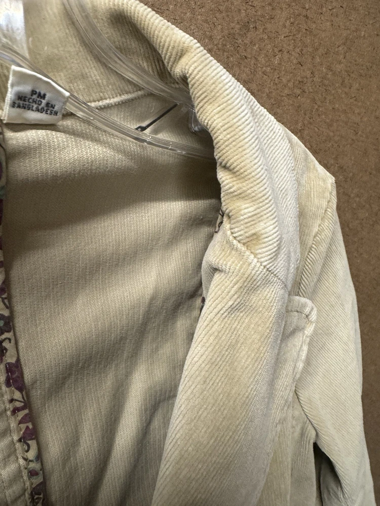 Pre-owned, gently worn. Size Petite medium. Pit to pit measurements in photos. Has a little stretch to it.